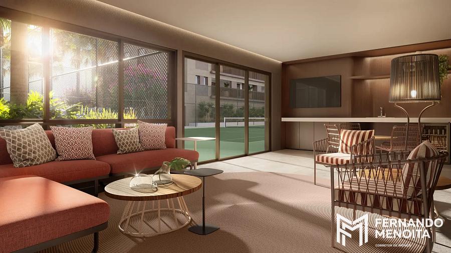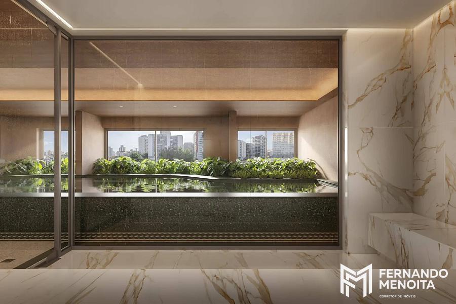 O lazer é completo e exclusivo para as torres, incluindo piscina semicoberta com raia de 25m, quadra de tênis com medidas oficiais, fitness completo, salão de festas, brinquedoteca, playground, sauna, sala de massagem e mini mercado. Um verdadeiro clube residencial em Moema.