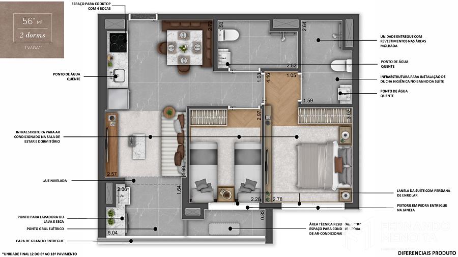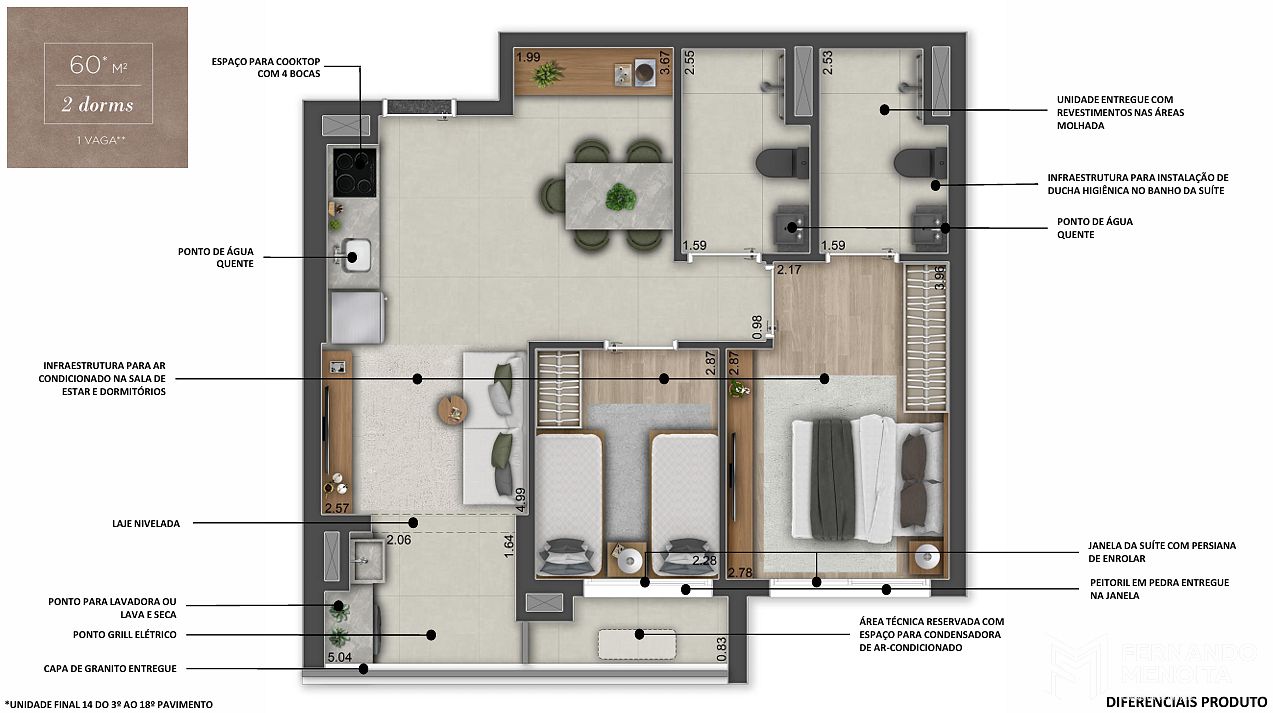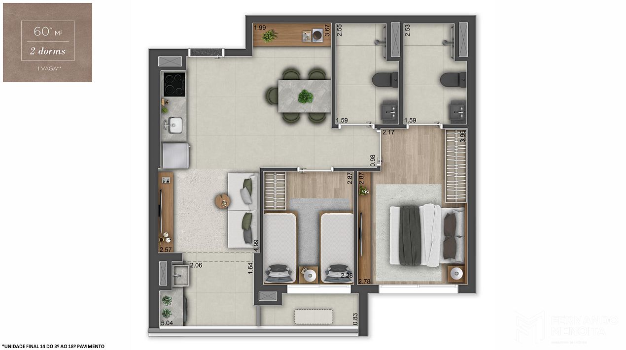 As unidades apresentam metragens bem distribuídas, com acabamento sofisticado e diferenciais construtivos que garantem conforto térmico, acústico e funcionalidade no dia a dia.