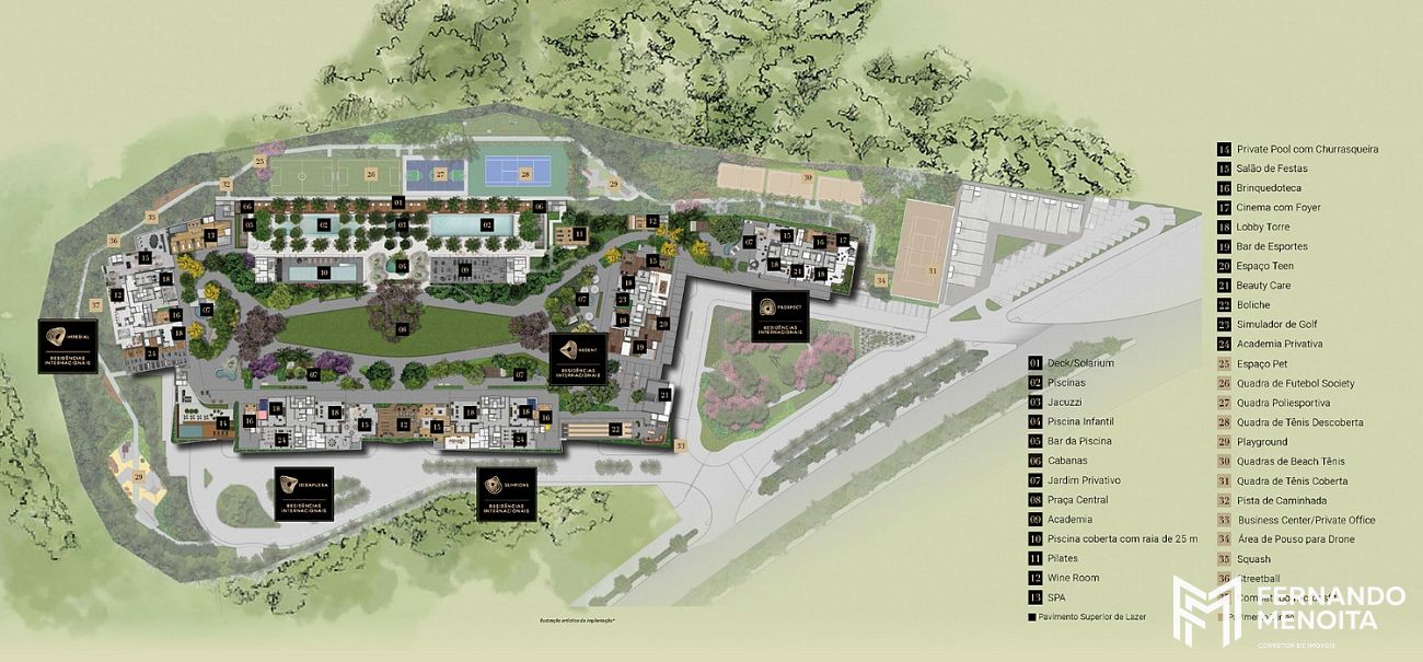 • Área verde total: 58.000 m² de lazer e paisagismo