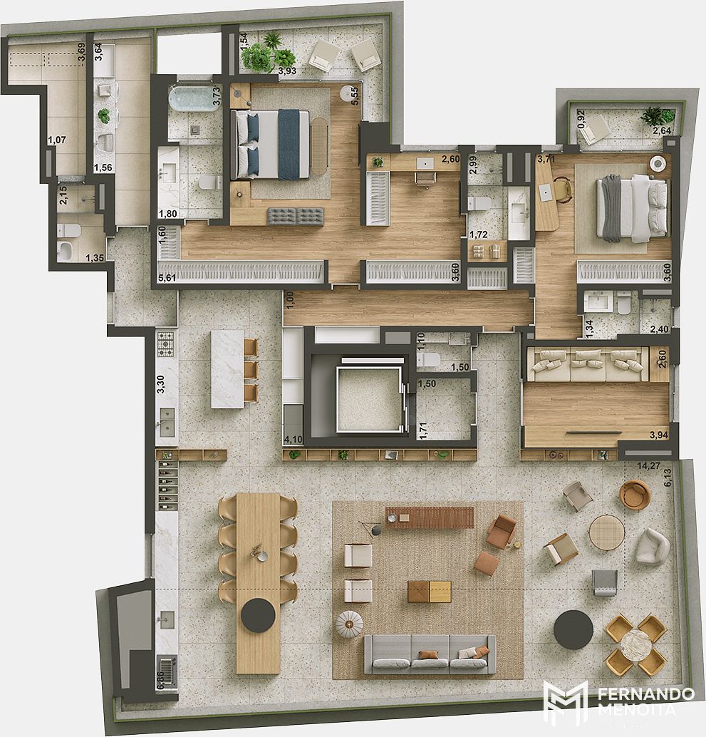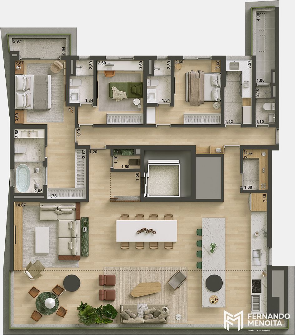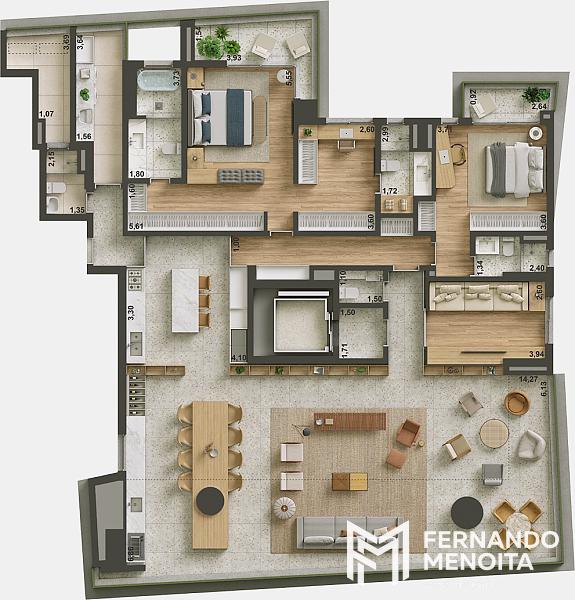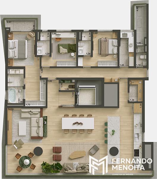 • Garden final 2: 302 m² | 3 suítes ou 4 dormitórios | 3 vagas | depósito 2,94 m²