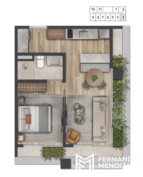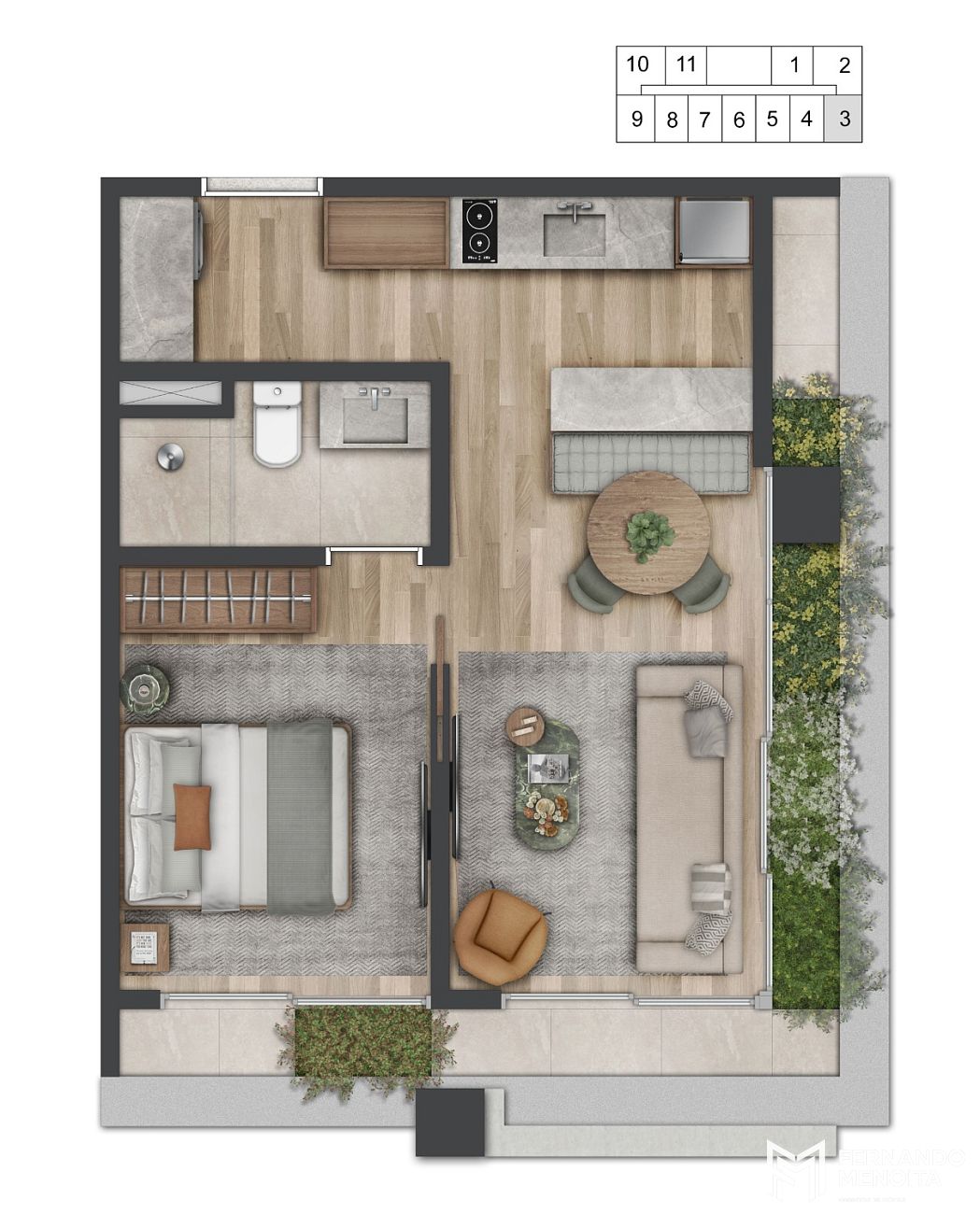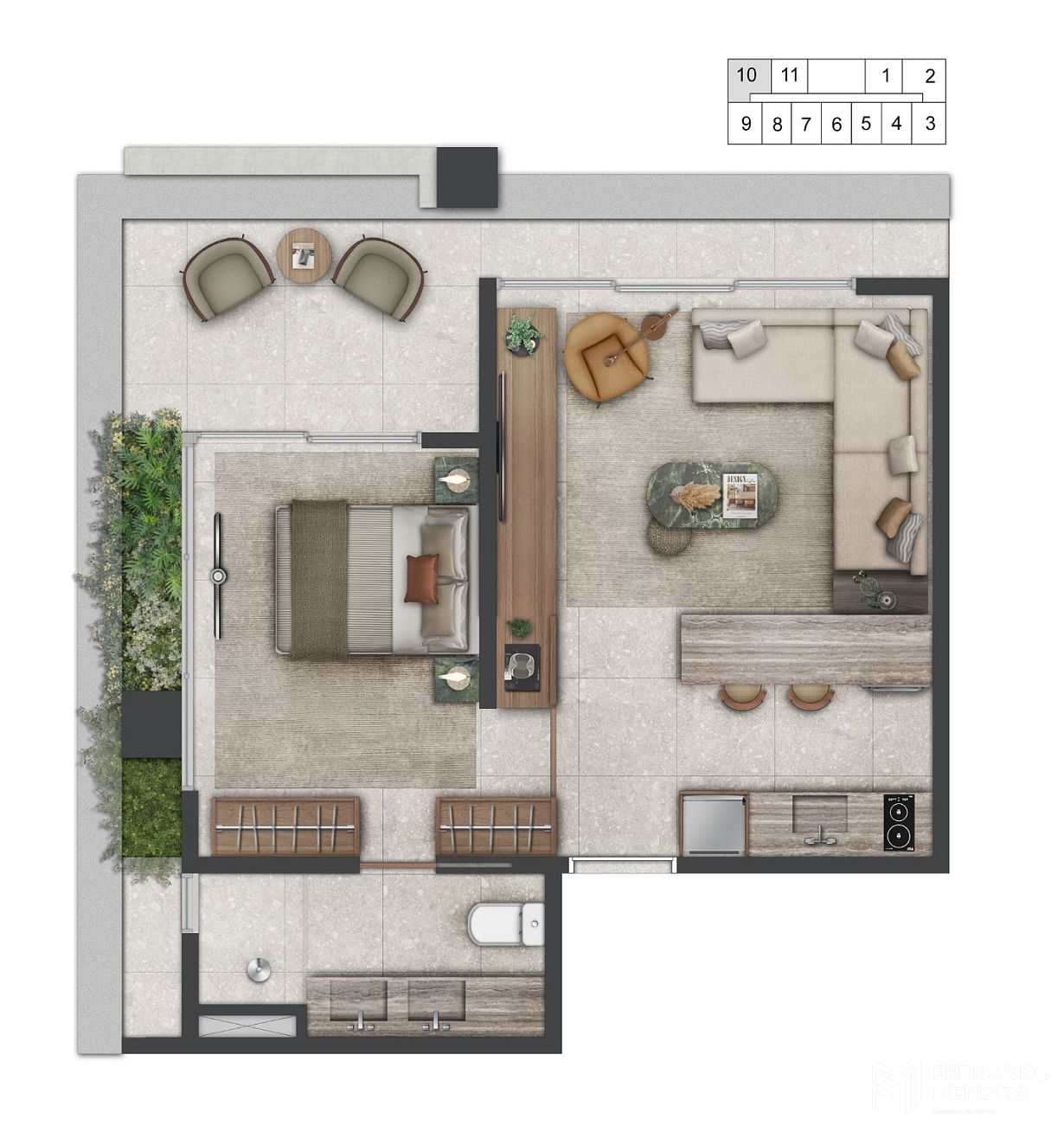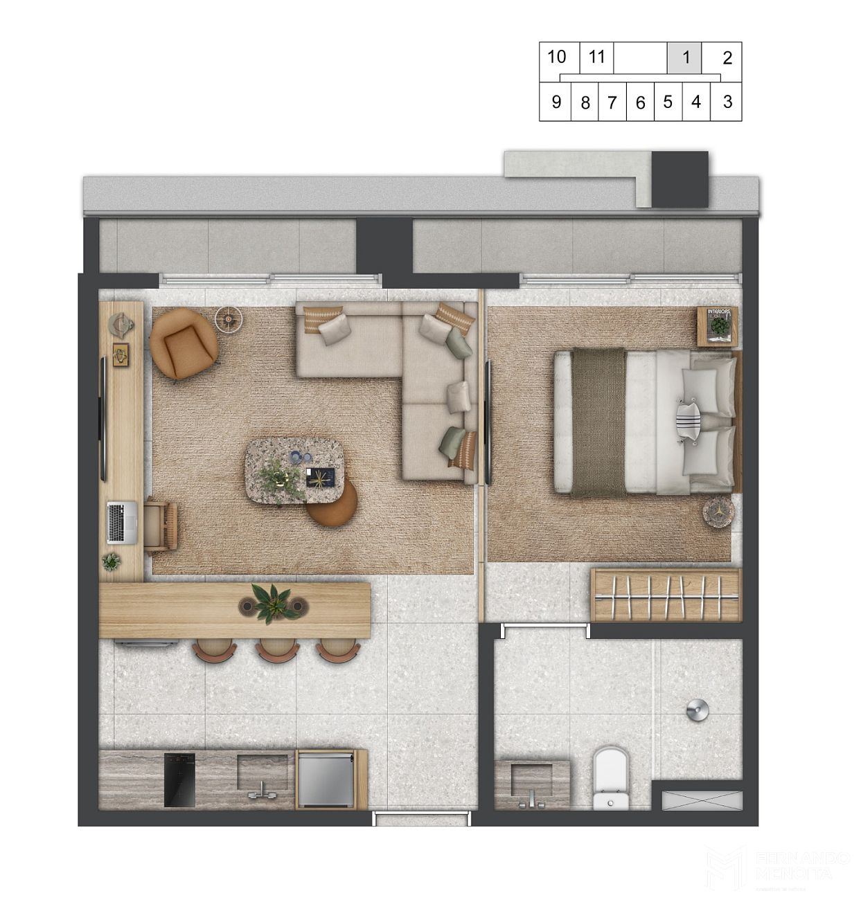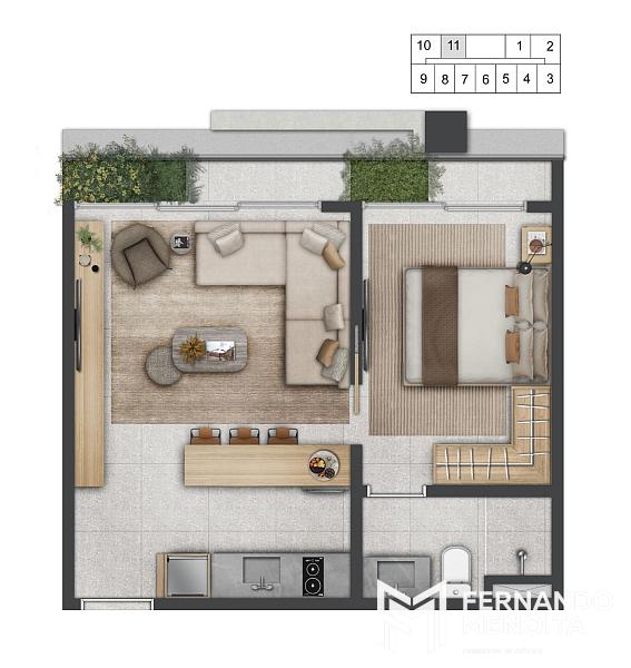 • Apartamentos 1 dormitório: 38m² a 52m²