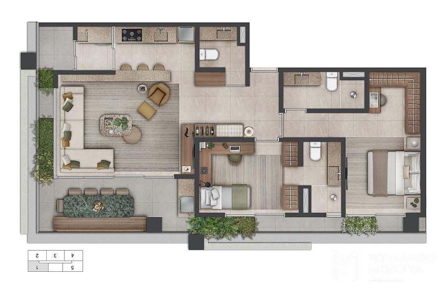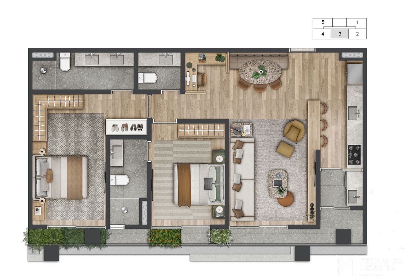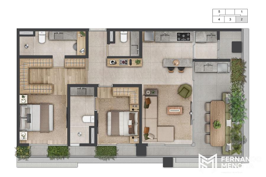 • Apartamentos 2 dormitórios (2 suítes): 76m² a 98m²