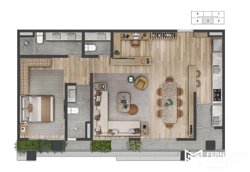 O J329 Itaim oferece uma variedade de tipologias que atendem diferentes estilos de vida, com apartamentos de 1 a 3 dormitórios, metragens entre 38 e 152m², além de unidades duplex e opções Smart (NR / Serviço de Moradia). As plantas privilegiam distribuição inteligente, conforto e soluções contemporâneas que dialogam com a dinâmica urbana do Itaim.