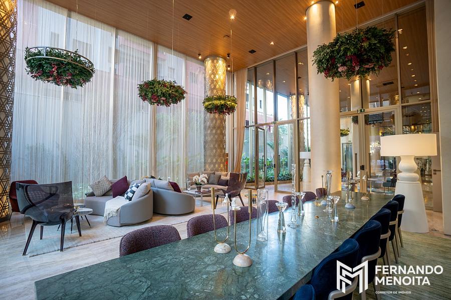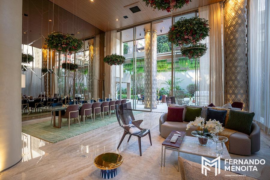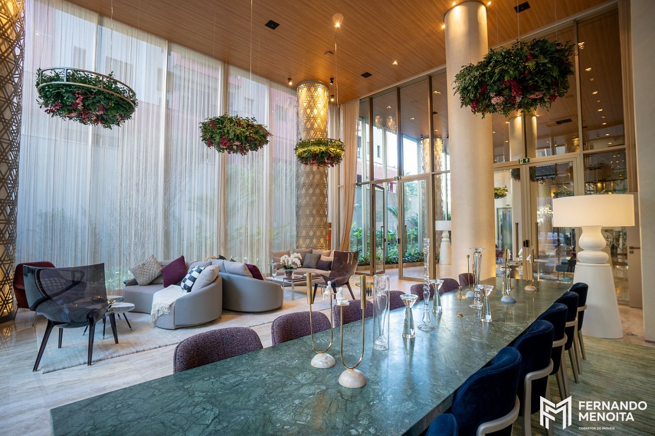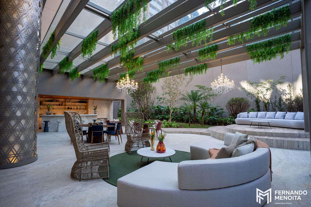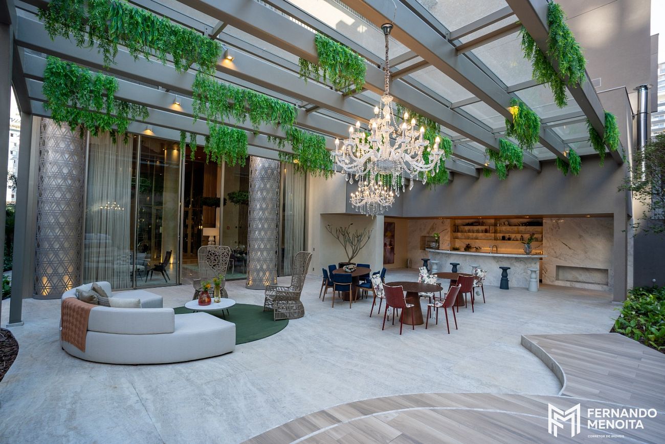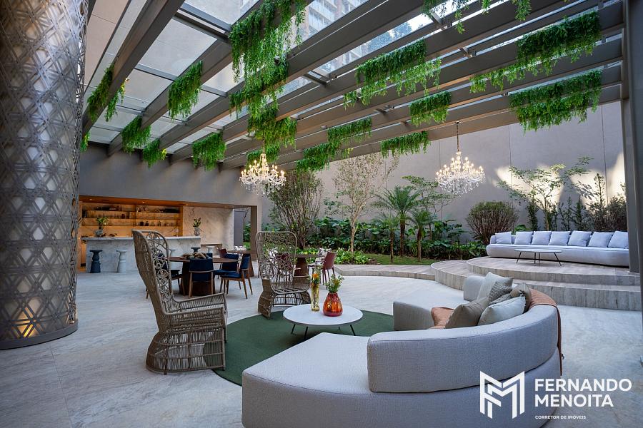O empreendimento conta ainda com um lobby imponente de 116m² com pé-direito de 6,15m, integrado ao jardim, além de lounge and garden com áreas internas e externas que reforçam o conceito de um verdadeiro “jardim secreto” no coração da cidade.
