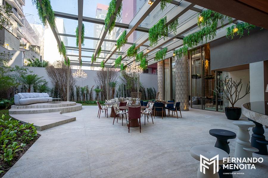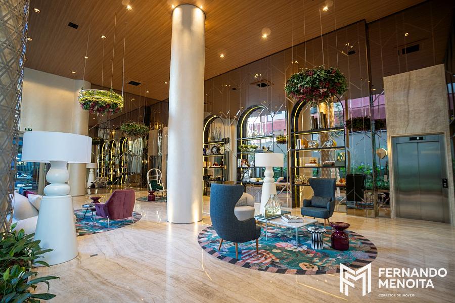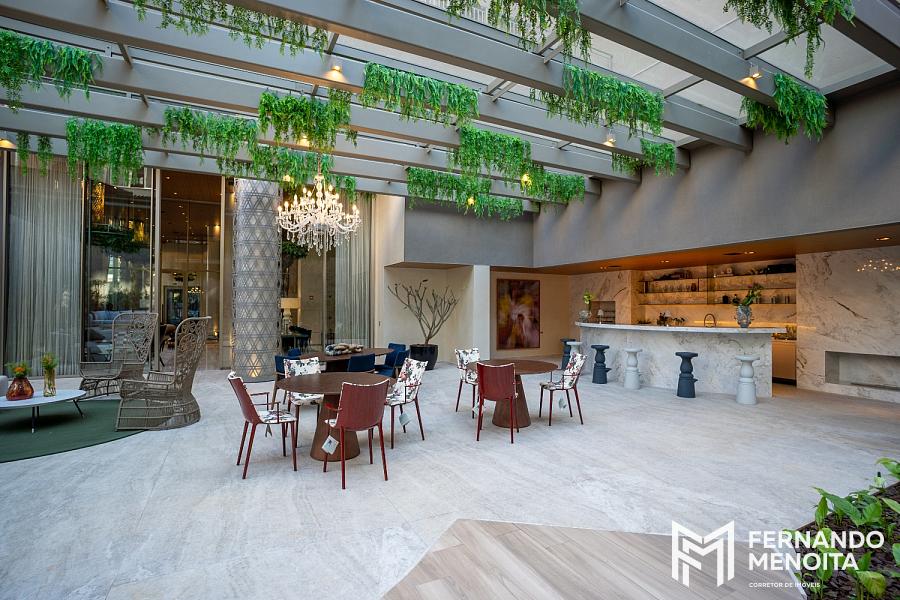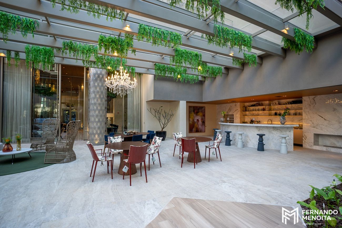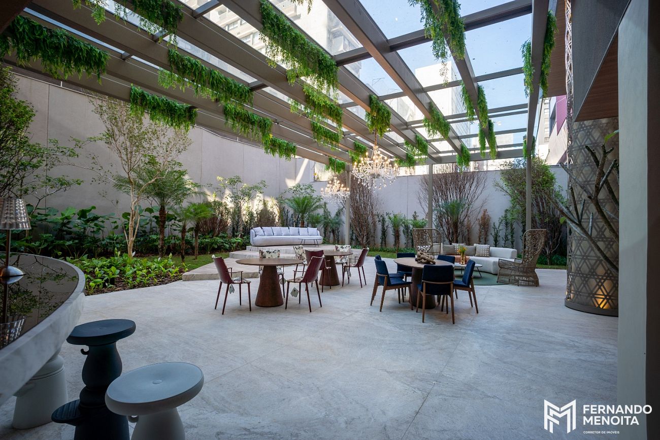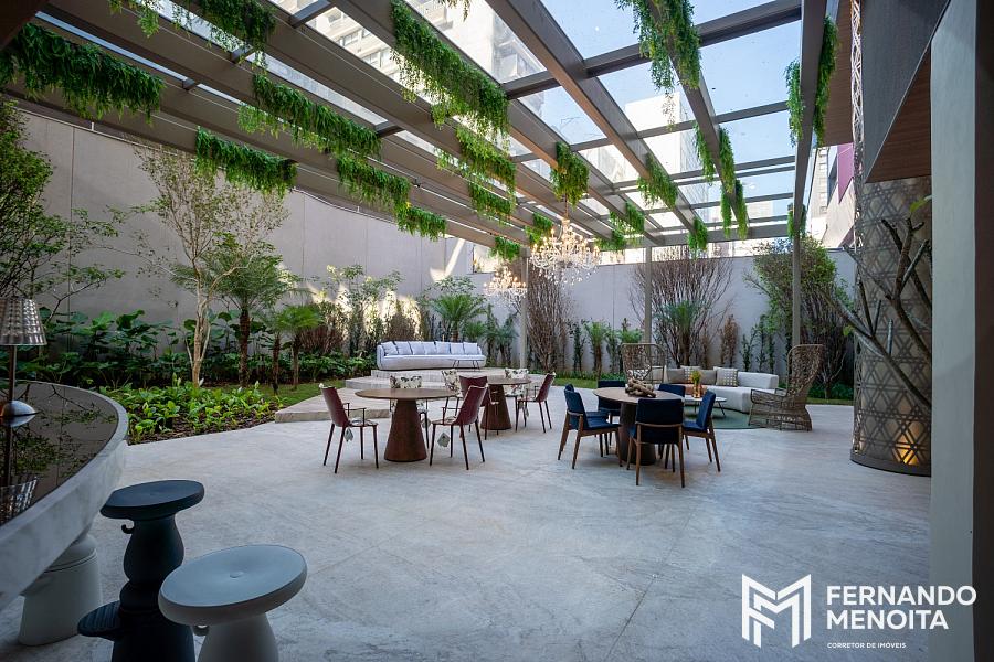 O empreendimento conta ainda com um lobby imponente de 116m² com pé-direito de 6,15m, integrado ao jardim, além de lounge and garden com áreas internas e externas que reforçam o conceito de um verdadeiro “jardim secreto” no coração da cidade.