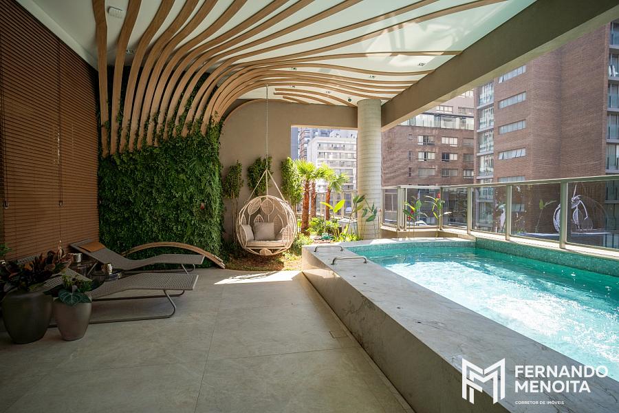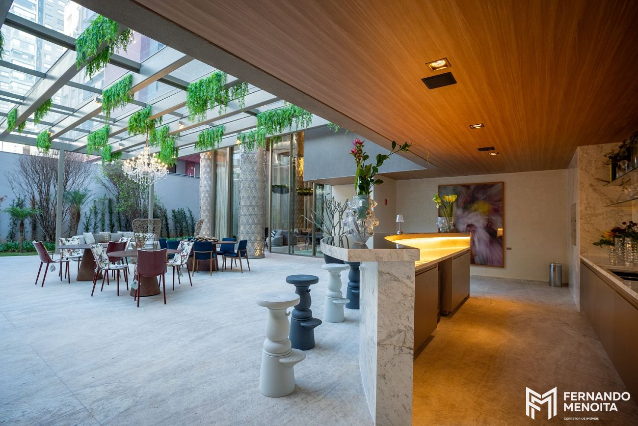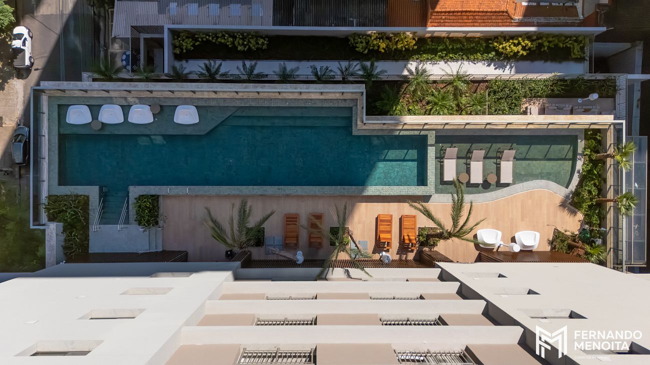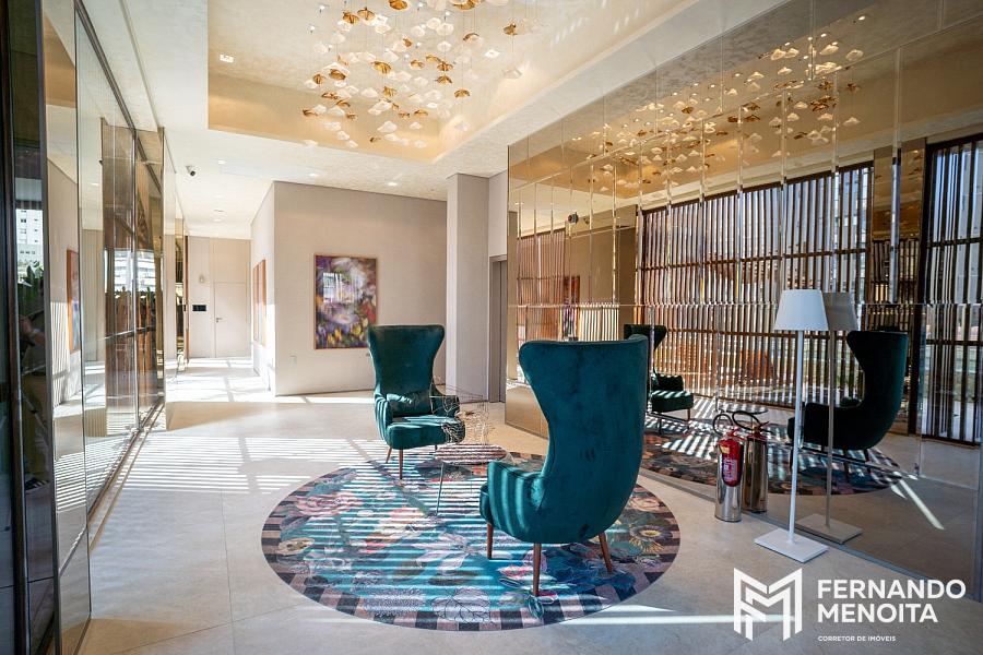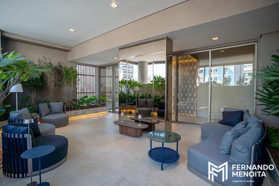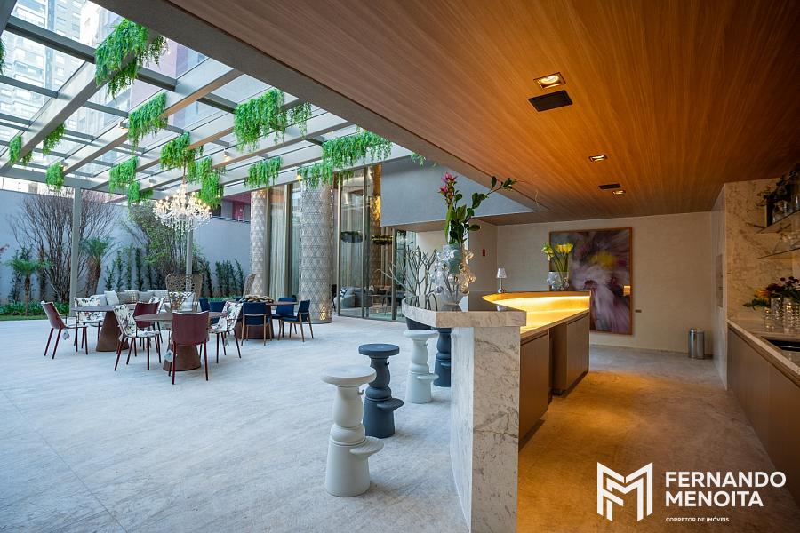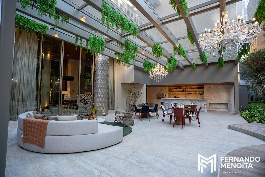 O empreendimento conta ainda com um lobby imponente de 116m² com pé-direito de 6,15m, integrado ao jardim, além de lounge and garden com áreas internas e externas que reforçam o conceito de um verdadeiro “jardim secreto” no coração da cidade.