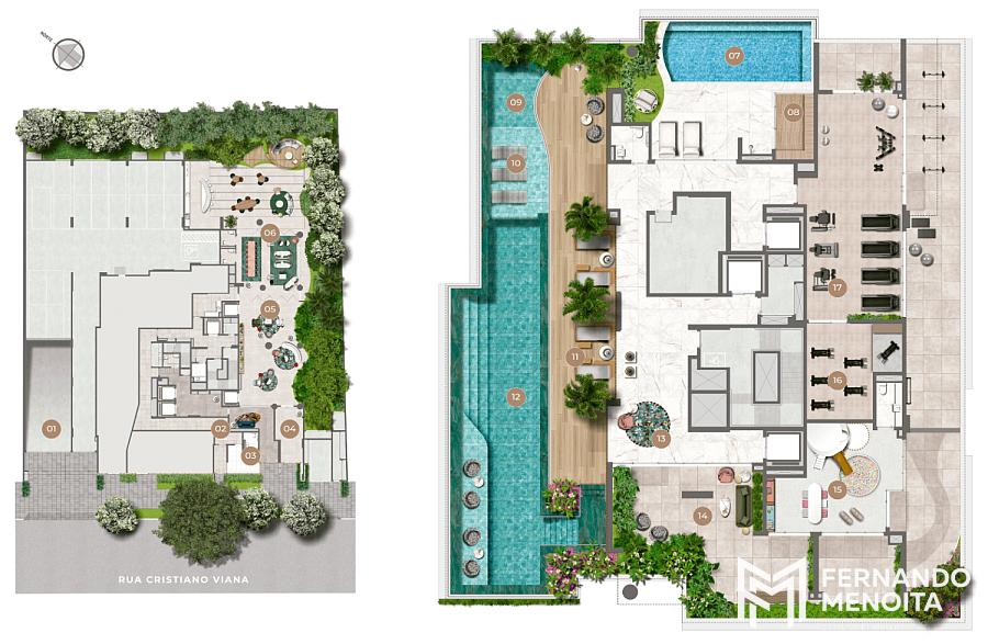 O lazer é elevado e distribuído de forma inteligente entre o térreo e o 7º pavimento, proporcionando uma experiência completa de bem-estar. Entre os destaques estão piscina com raia de 20 metros, deck molhado, piscina infantil, spa com sauna seca, fitness completo com terraço, spinning, kids place, lounge e amplos espaços integrados ao paisagismo assinado por Benedito Abbud.