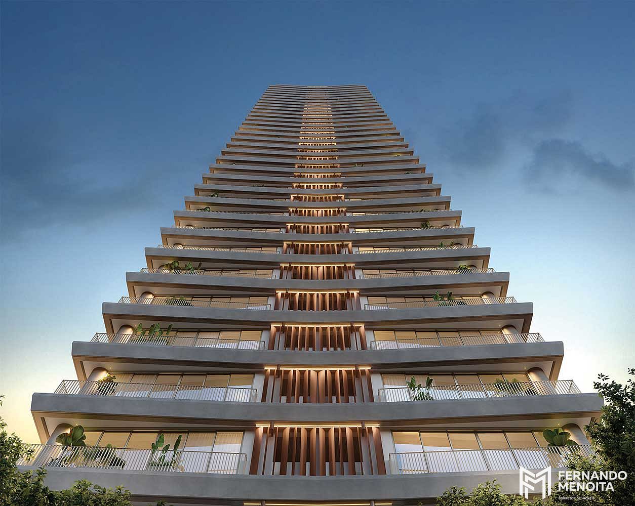 Com mais de 100 metros de altura, o empreendimento apresenta uma torre imponente, com linhas marcantes e terraços amplos, proporcionando a sensação de casa suspensa e conexão permanente com o horizonte. Um residencial pensado para quem valoriza privacidade, bem-estar e excelência construtiva.