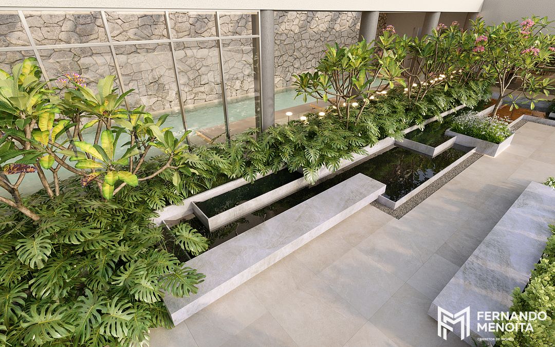 • Lounge externo com espelho d’água