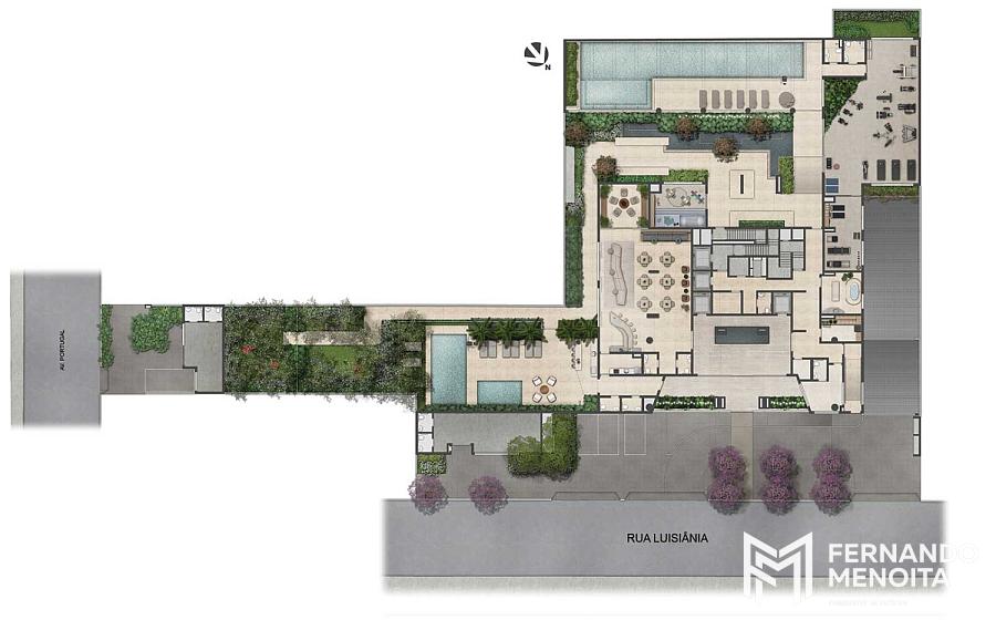 Localizado na Rua Luisiânia, no Brooklin, em um terreno privilegiado, cercado pelas ruas Luisiânia, Nebraska e Avenida Portugal, o empreendimento está próximo à Sociedade Hípica Paulista e às principais vias da cidade, em uma região que combina perfil cosmopolita, tranquilidade e infraestrutura completa.