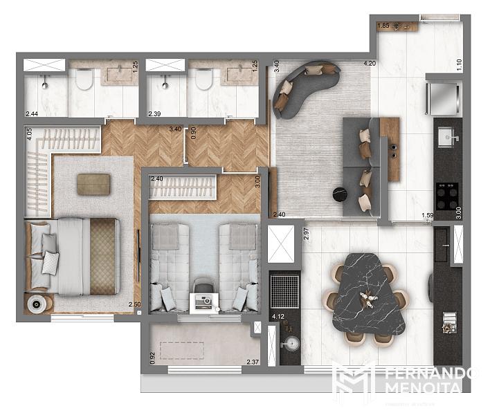 • 87,50 m² (opção): 2 suítes | 1 vaga*