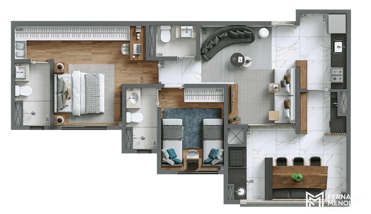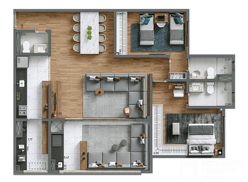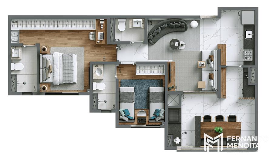 98,90 m² – planta tipo: