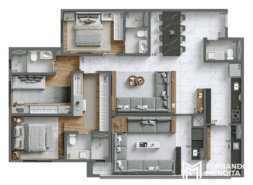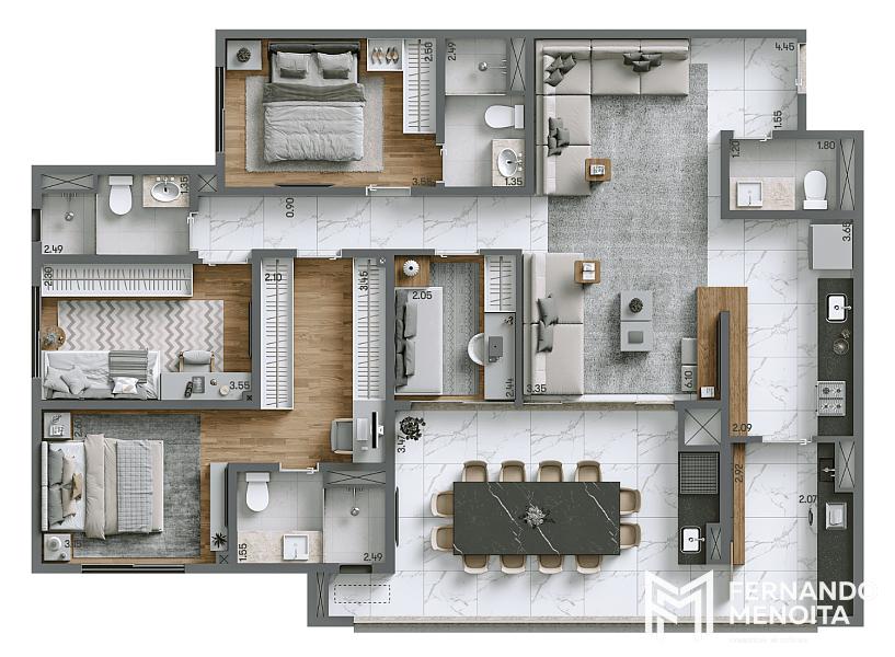 • 125,10 m² – planta opção: 4 quartos | 2 suítes | 2 vagas