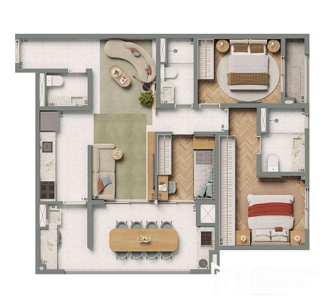 • 69,50 m² – 2 suítes – 1 vaga