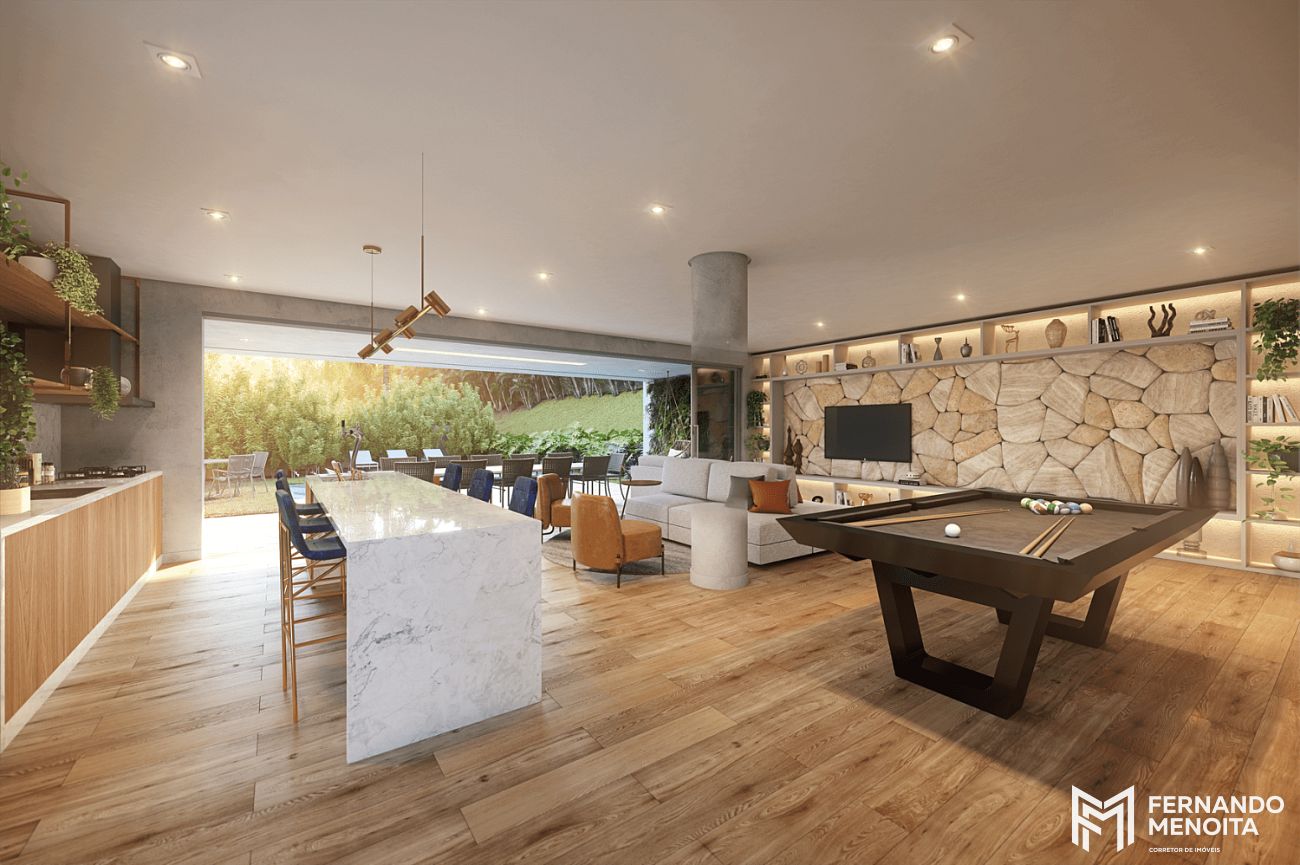 O empreendimento também incorpora soluções modernas como Smart Home 2.0, infraestrutura para Wi-Fi, monitoramento, minimarket interno e car sharing, reforçando a proposta de um condomínio inteligente e funcional.
