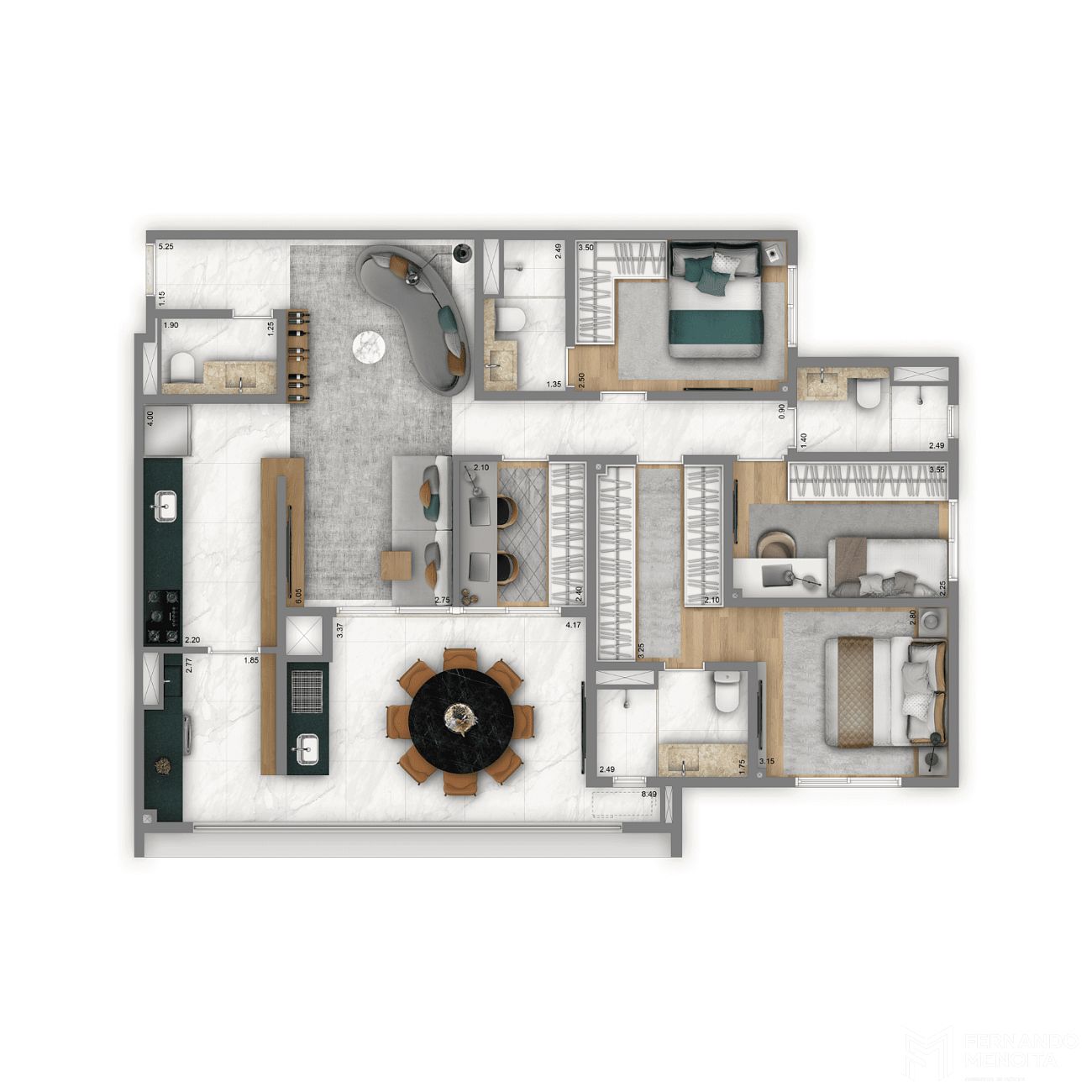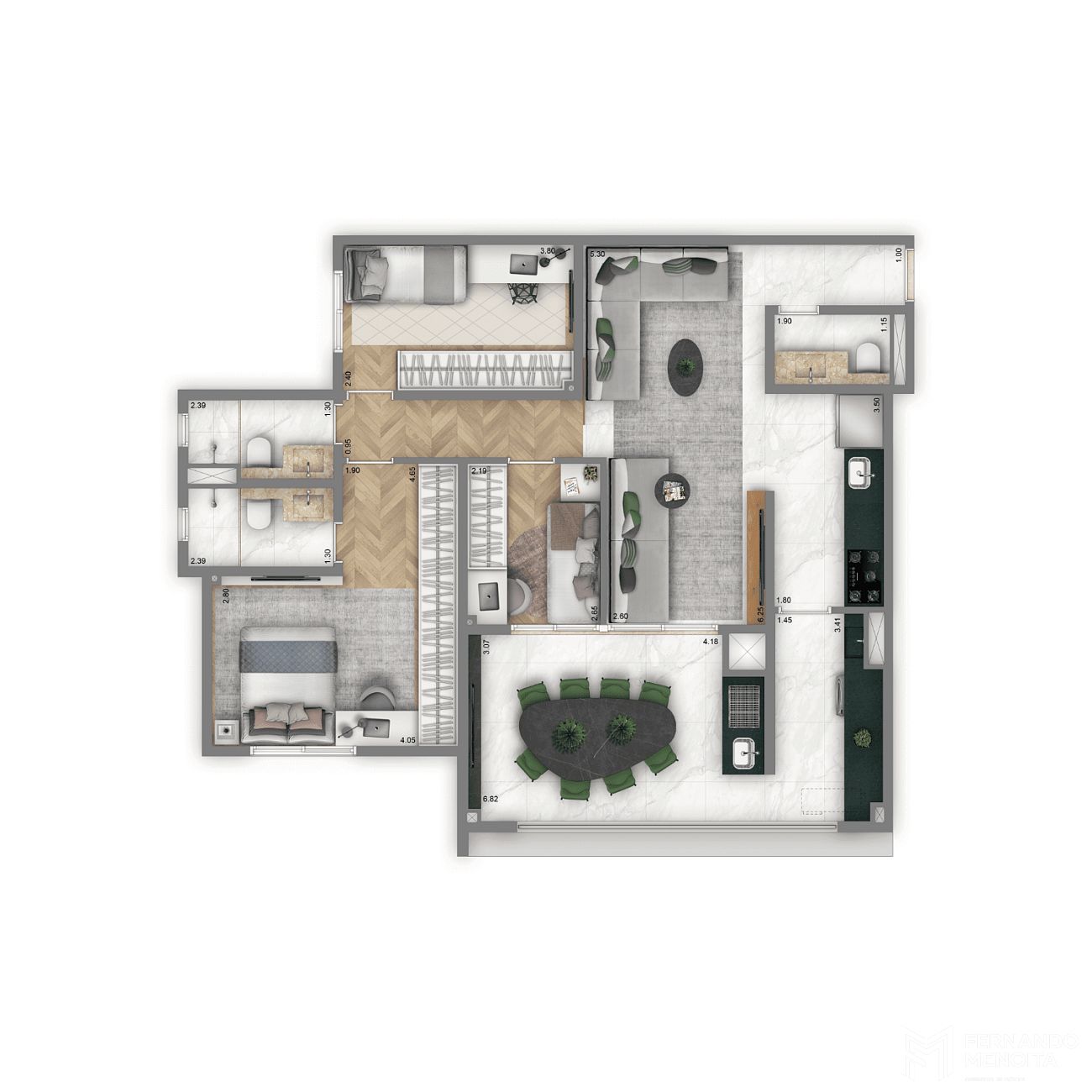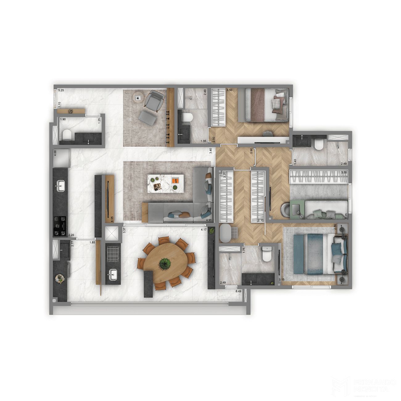 • 122,60 m² – 3 suítes – 2 vagas