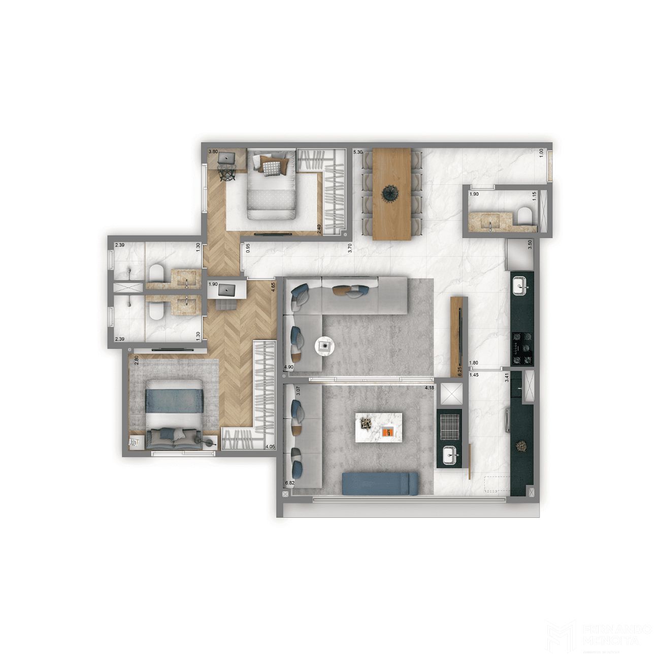 • 76,10 m² – 2 suítes – 1 vaga