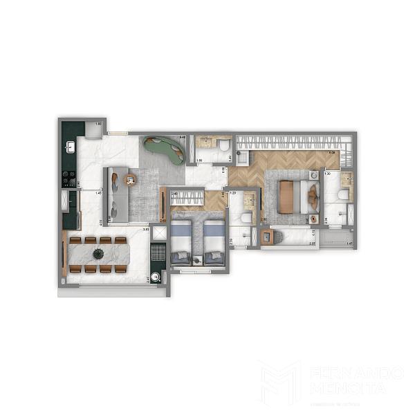 • 100,65 m² – opção 2 suítes – 2 vagas