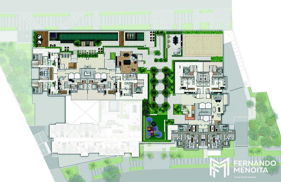 • Pavimento térreo: acessos, áreas sociais e conveniências