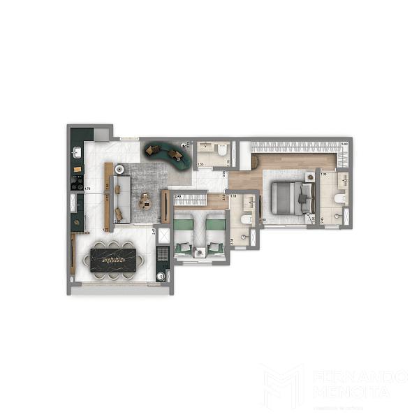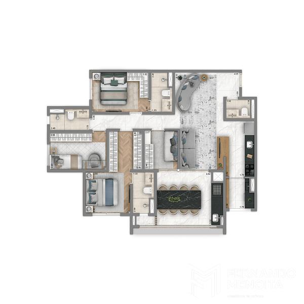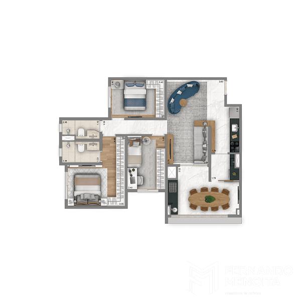 • 108,35 m² privativos – planta opção: 4 dormitórios | 2 suítes | 2 vagas determinadas