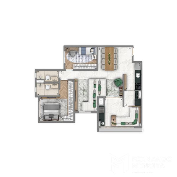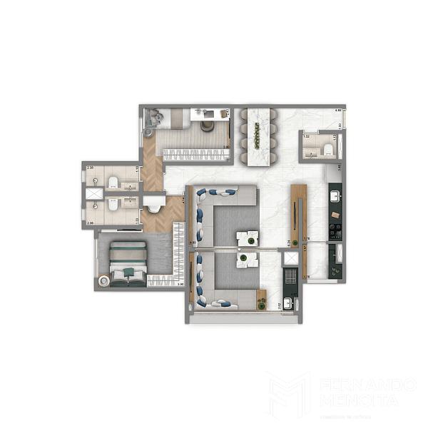 • 67,45 m² privativos – planta tipo: 2 dormitórios | 1 suíte | 1 vaga