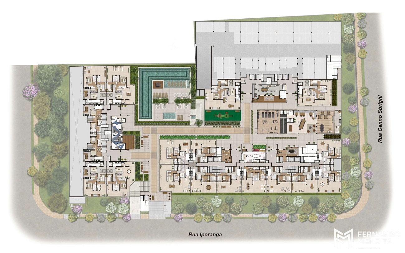 O projeto paisagístico foi desenvolvido para promover o contato com a natureza e a convivência entre os moradores, criando ambientes equilibrados entre arquitetura, áreas verdes e espaços de uso comum.