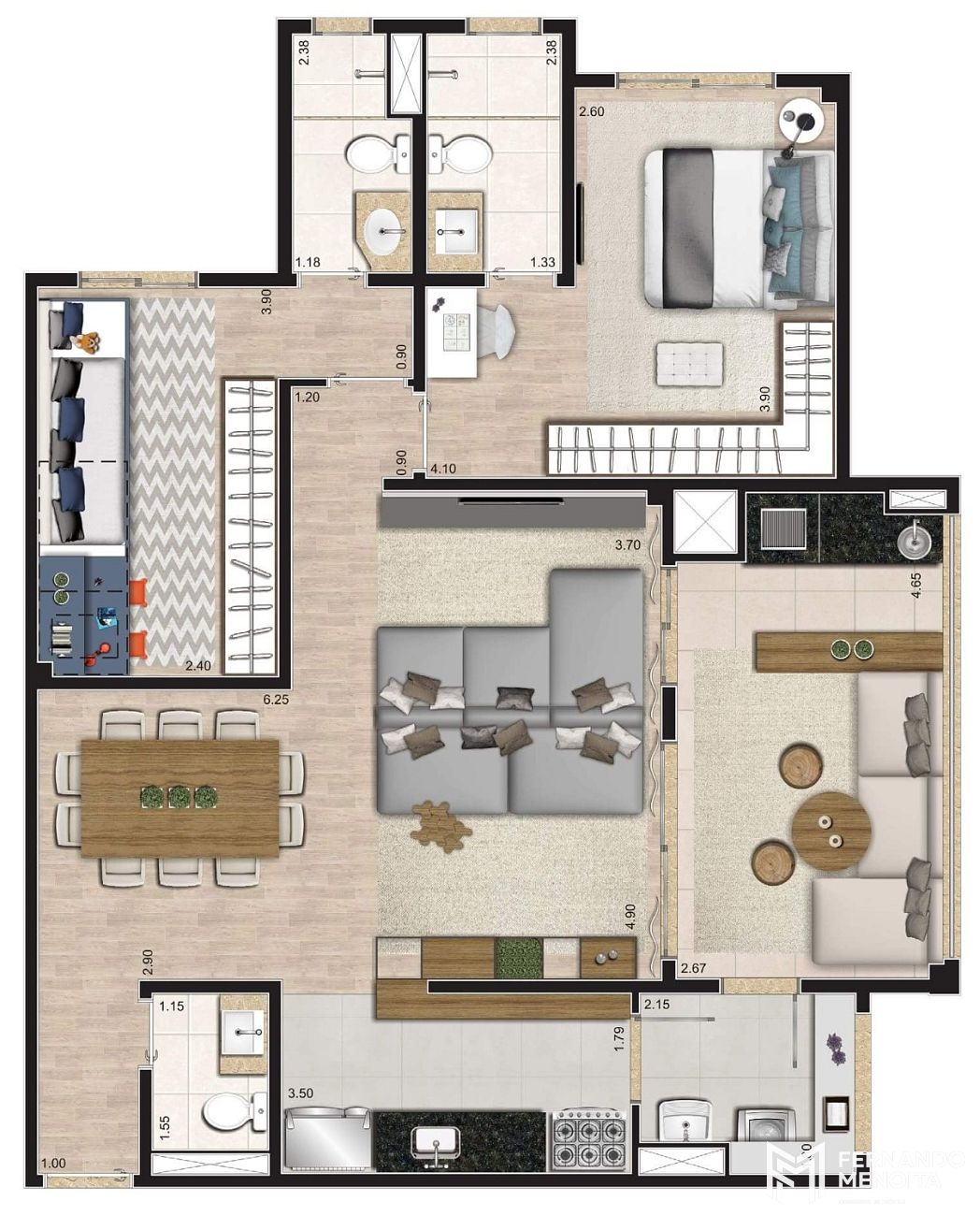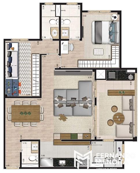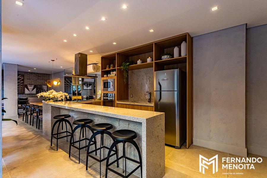 • 68,50 m² – 2 dormitórios (1 suíte) – 1 vaga – churrasqueira na varanda