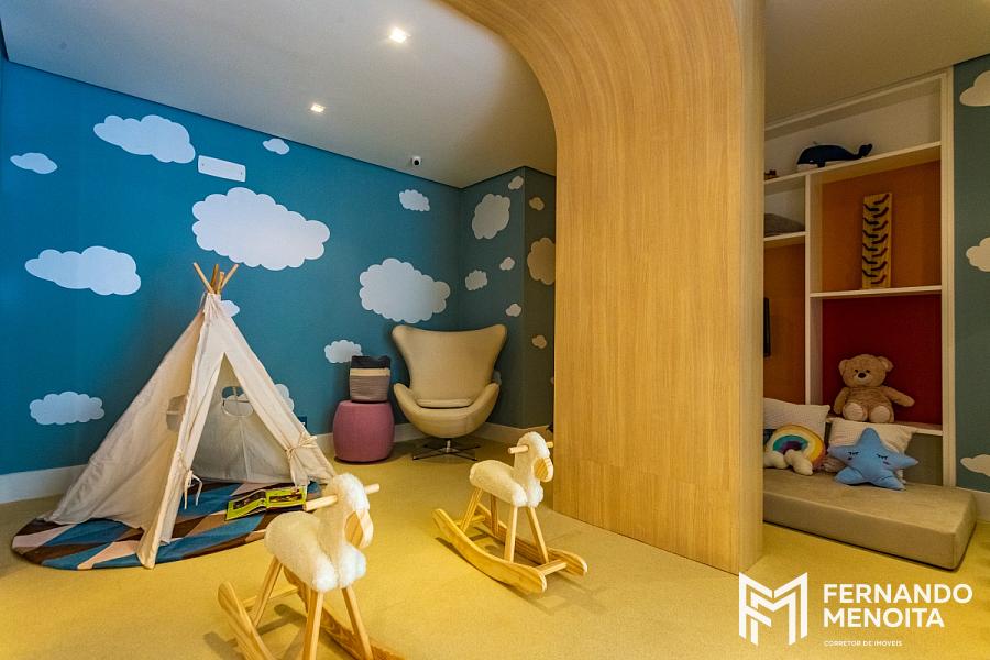 O lazer é completo e distribuído de forma estratégica no térreo, criando um verdadeiro conceito de condomínio-clube, com ambientes como piscina adulto e infantil, deck molhado, solarium, salão de festas, espaço gourmet, churrasqueira com forno de pizza, fitness com equipamentos profissionais, playground, brinquedoteca, espaço games, jogos adulto, espaço office e áreas de convivência integradas ao paisagismo.