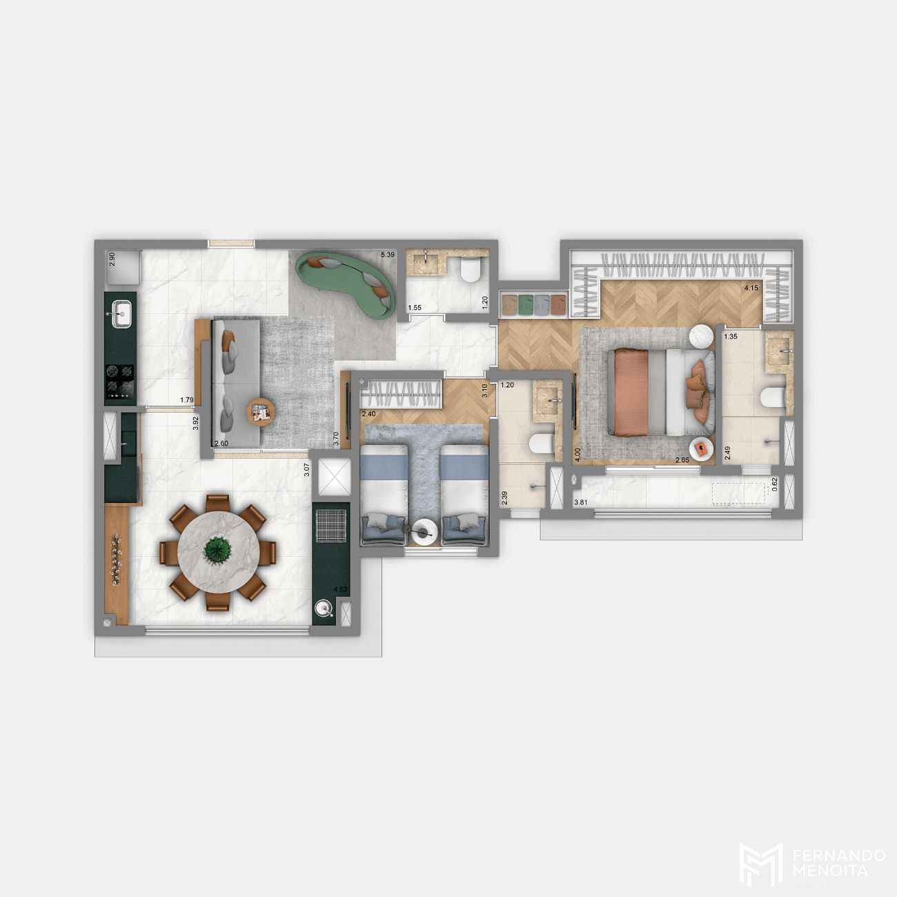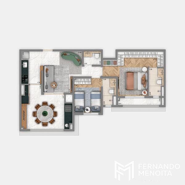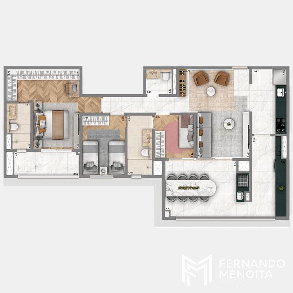 • 108,90 m² – 3 suítes – 2 vagas