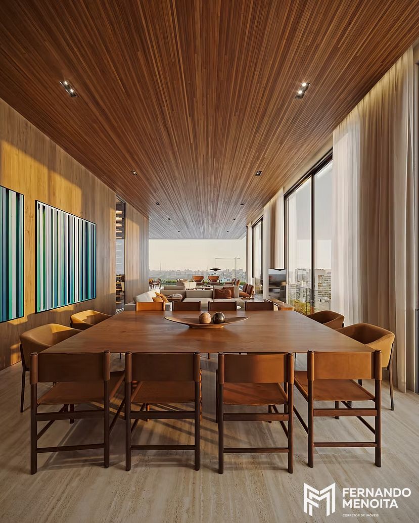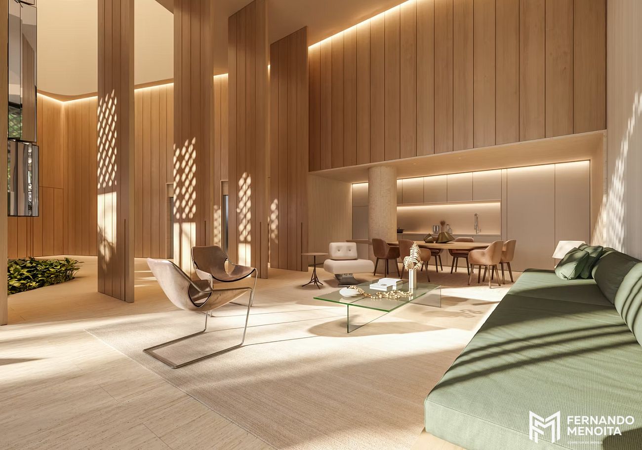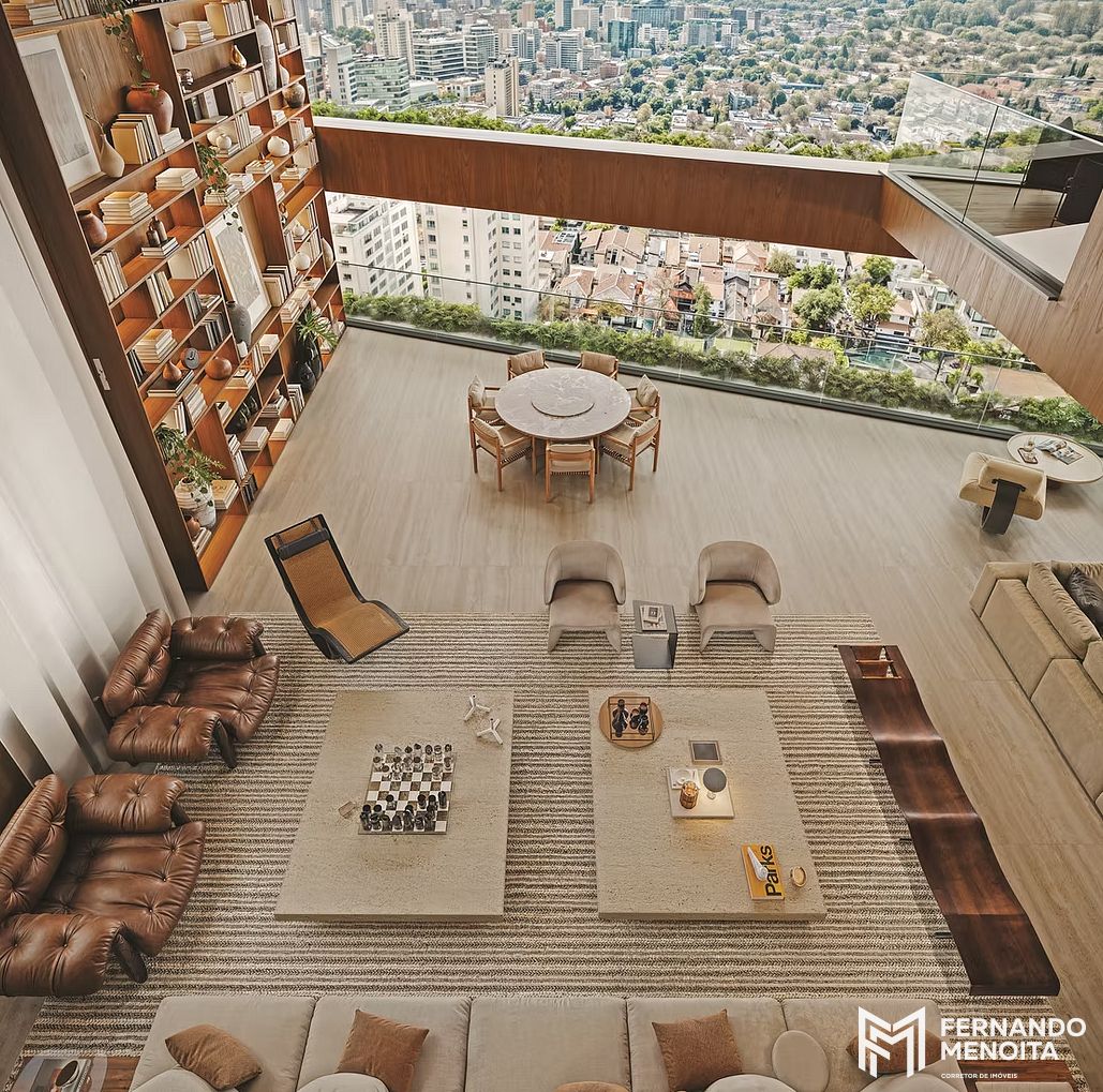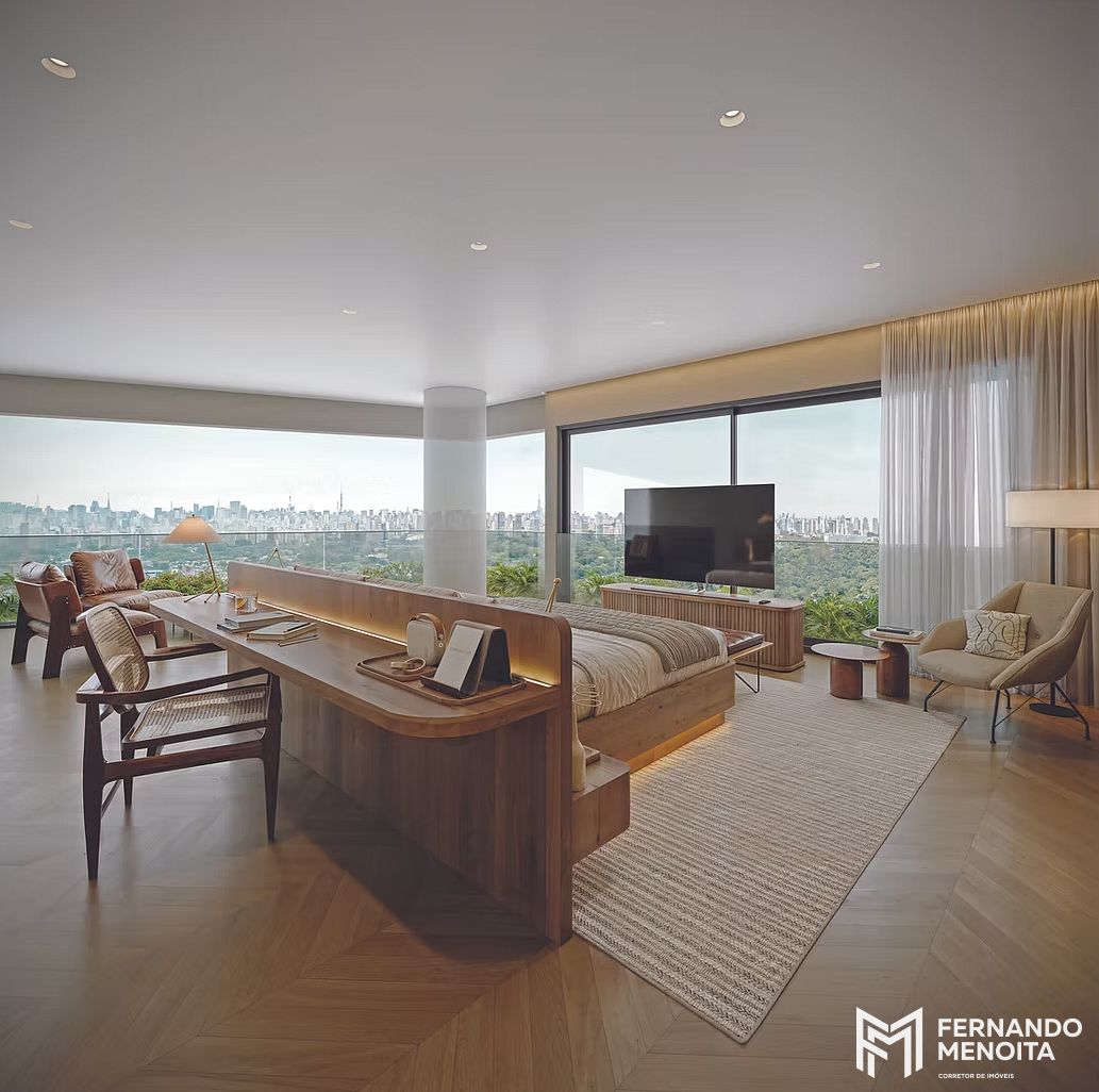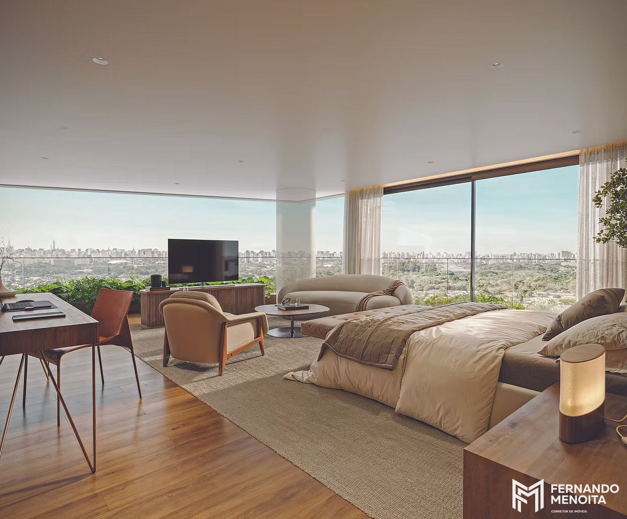 Um dos grandes diferenciais do empreendimento é a vista panorâmica de 180° para o Parque Ibirapuera, proporcionando uma experiência visual única, onde o verde se integra diretamente aos ambientes internos, elevando a qualidade de vida e a percepção de exclusividade.