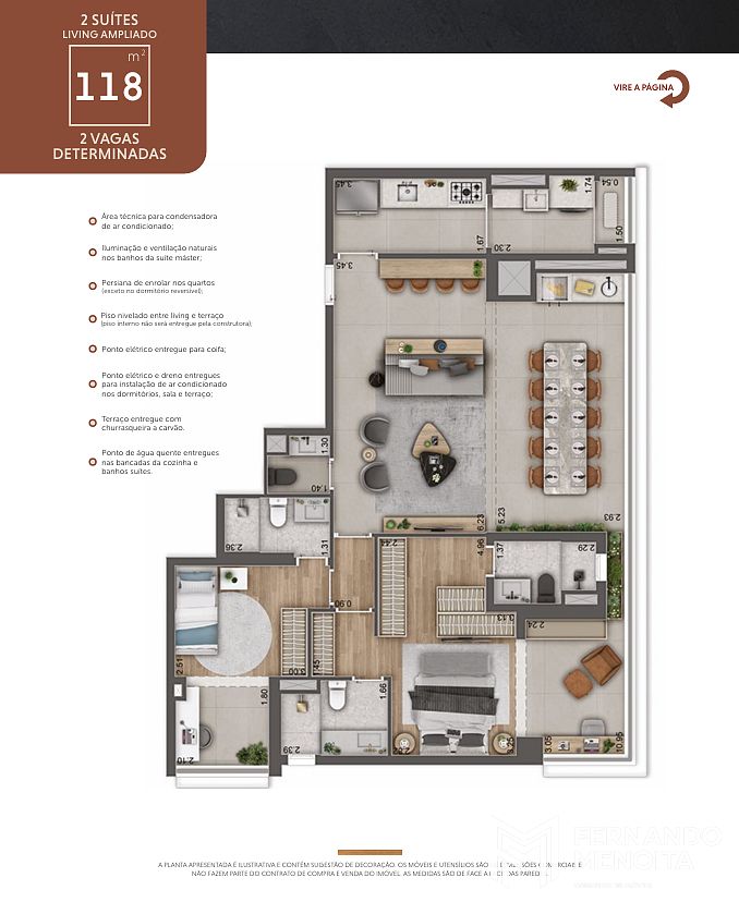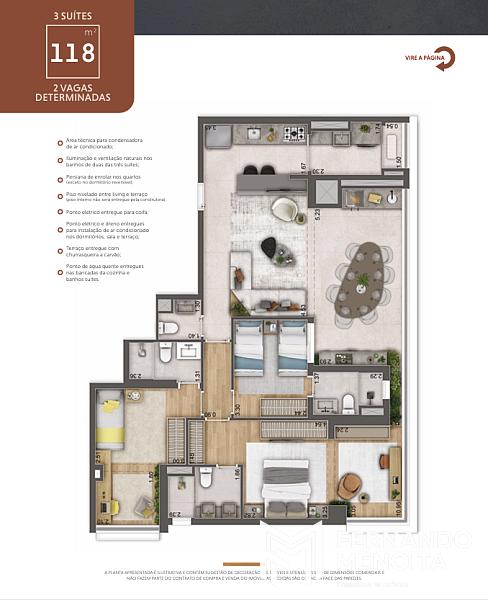 • 118 m² – 3 suítes – 2 vagas determinadas