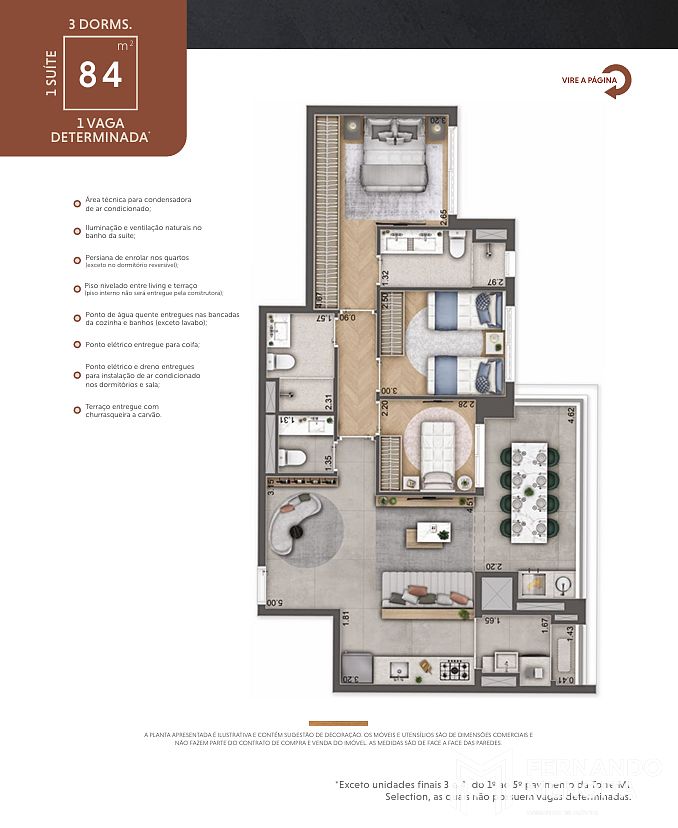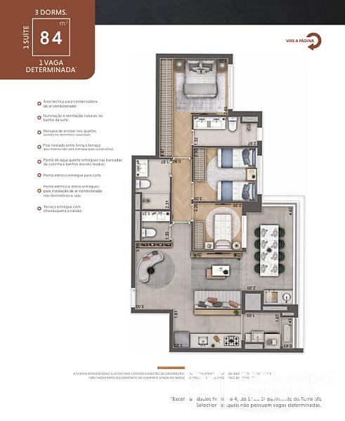• 84 m² – 3 dormitórios (1 suíte) – 1 vaga determinada*