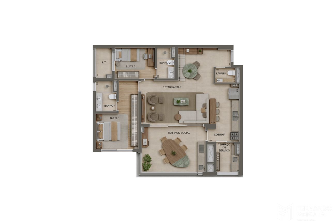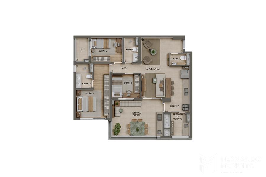 • 3 suítes – 132 m²