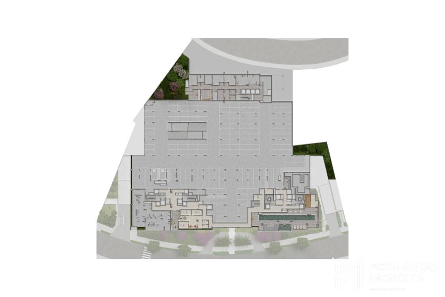 • 4º Subsolo: Porte cochère, portaria blindada, lobby, mini mercado, coworking, concierge