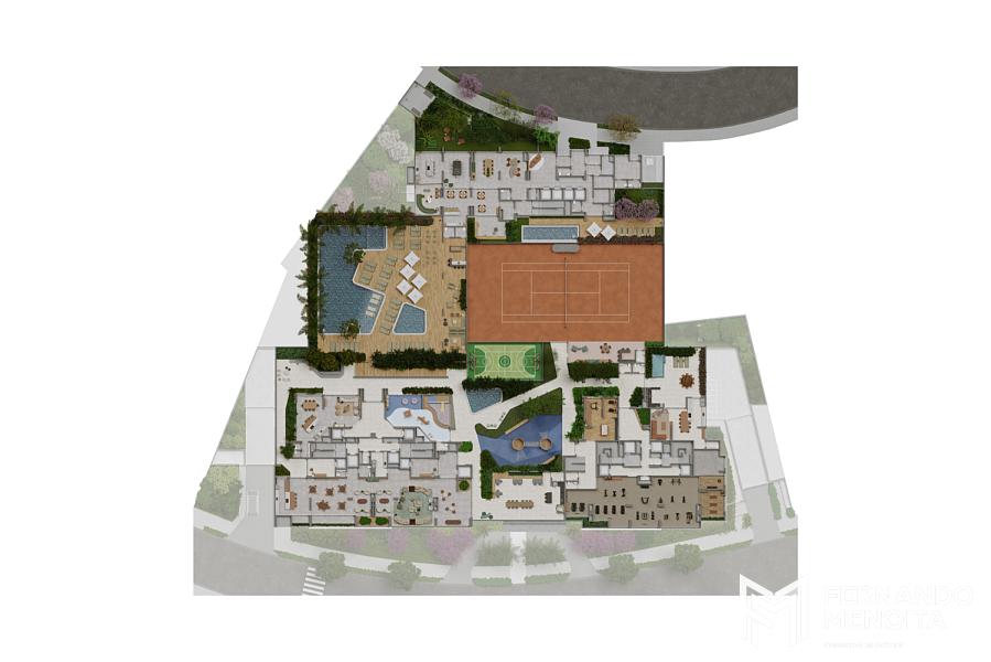 O empreendimento se posiciona como um verdadeiro refúgio urbano, combinando arquitetura sofisticada, paisagismo integrado e um amplo complexo de lazer e bem-estar, com destaque para o conceito de wellness residencial, incluindo academia completa, sauna e quadra de tênis com dimensões oficiais.