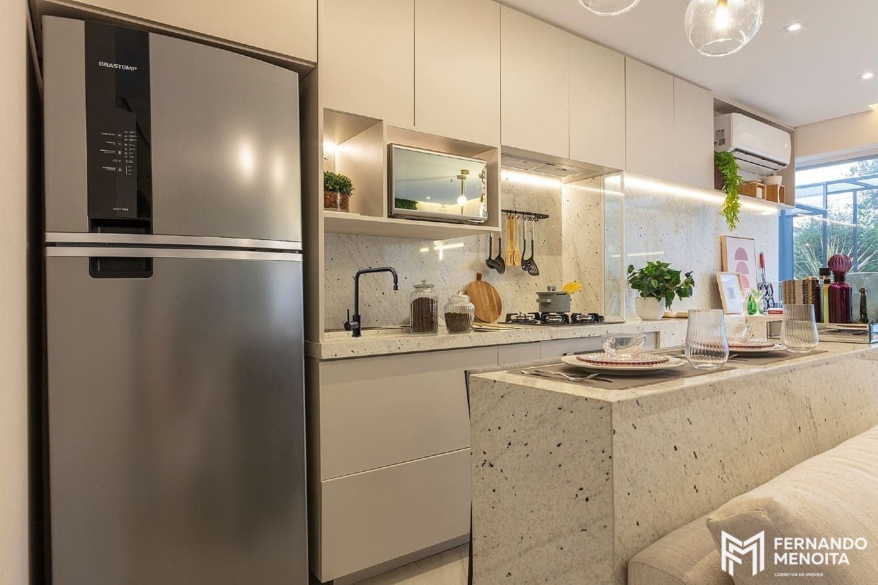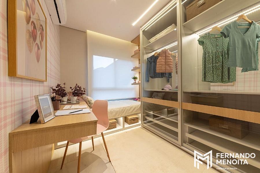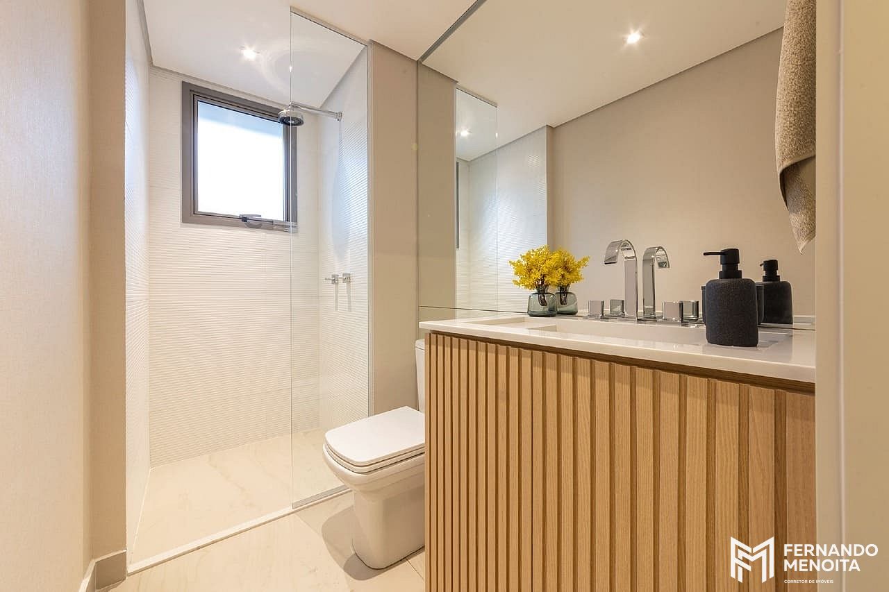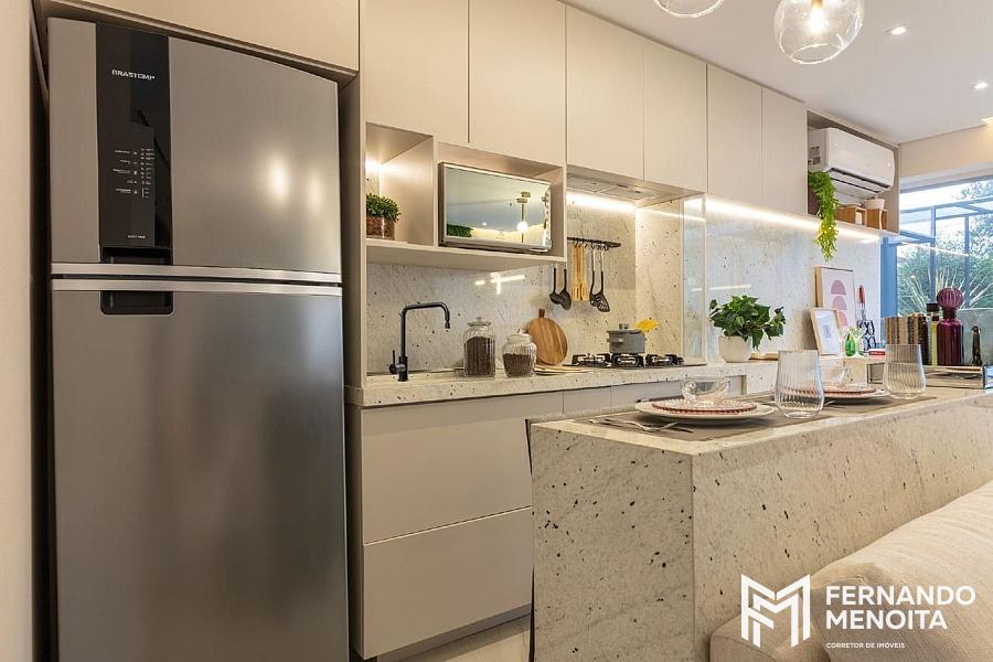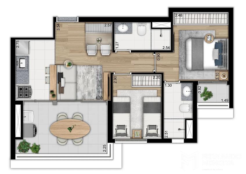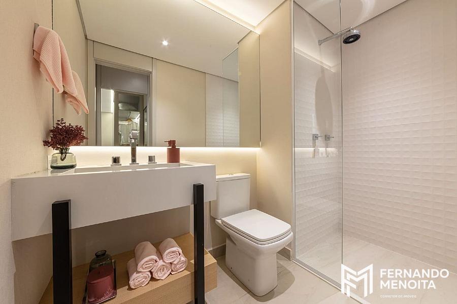 São 2 torres com apartamentos de 56 m² e 79 m², ambos com 1 vaga. A planta de 56 m² oferece 2 dormitórios (sendo 1 suíte), e a de 79 m² conta com 3 dormitórios (também com 1 suíte), com layouts confortáveis para a rotina. As unidades trazem diferenciais que elevam o conforto, como infraestrutura para ar-condicionado nos dormitórios e sala, piso da área social nivelado com o terraço, água quente na cozinha e banheiros e ponto elétrico para grill.