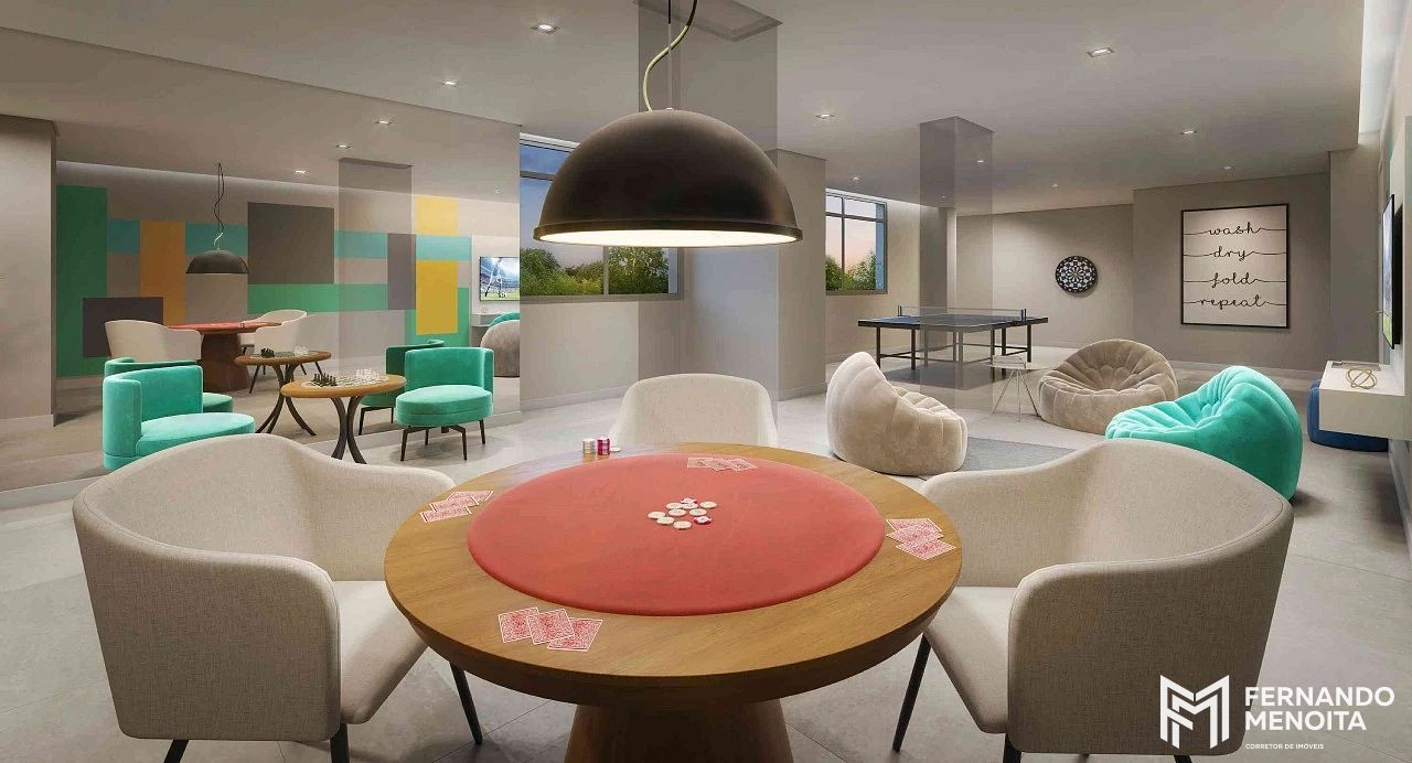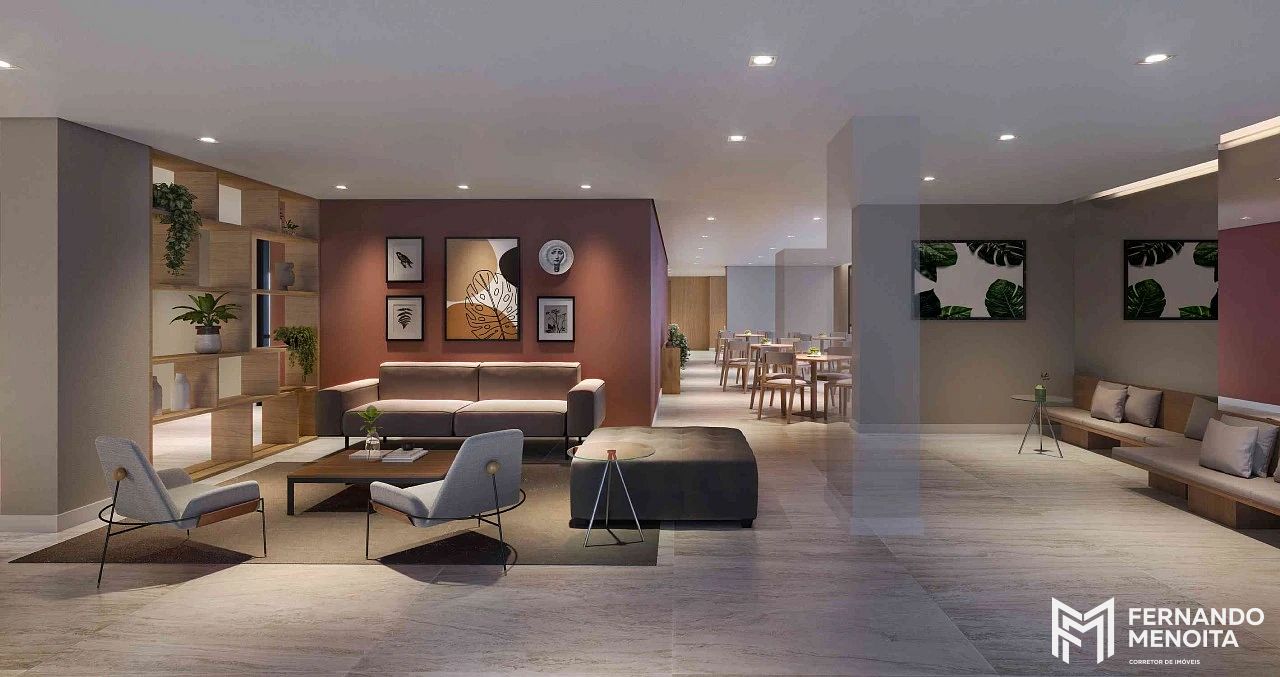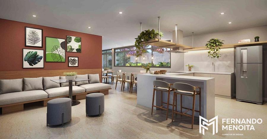 • Apartamentos de 56 m²: 2 dormitórios, sendo 1 suíte, sala de estar e jantar, cozinha integrada, terraço social/serviço