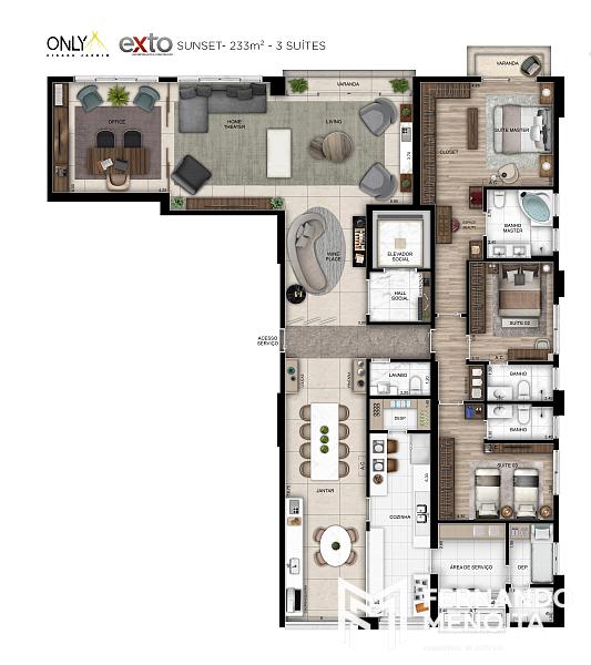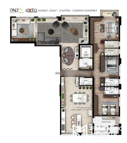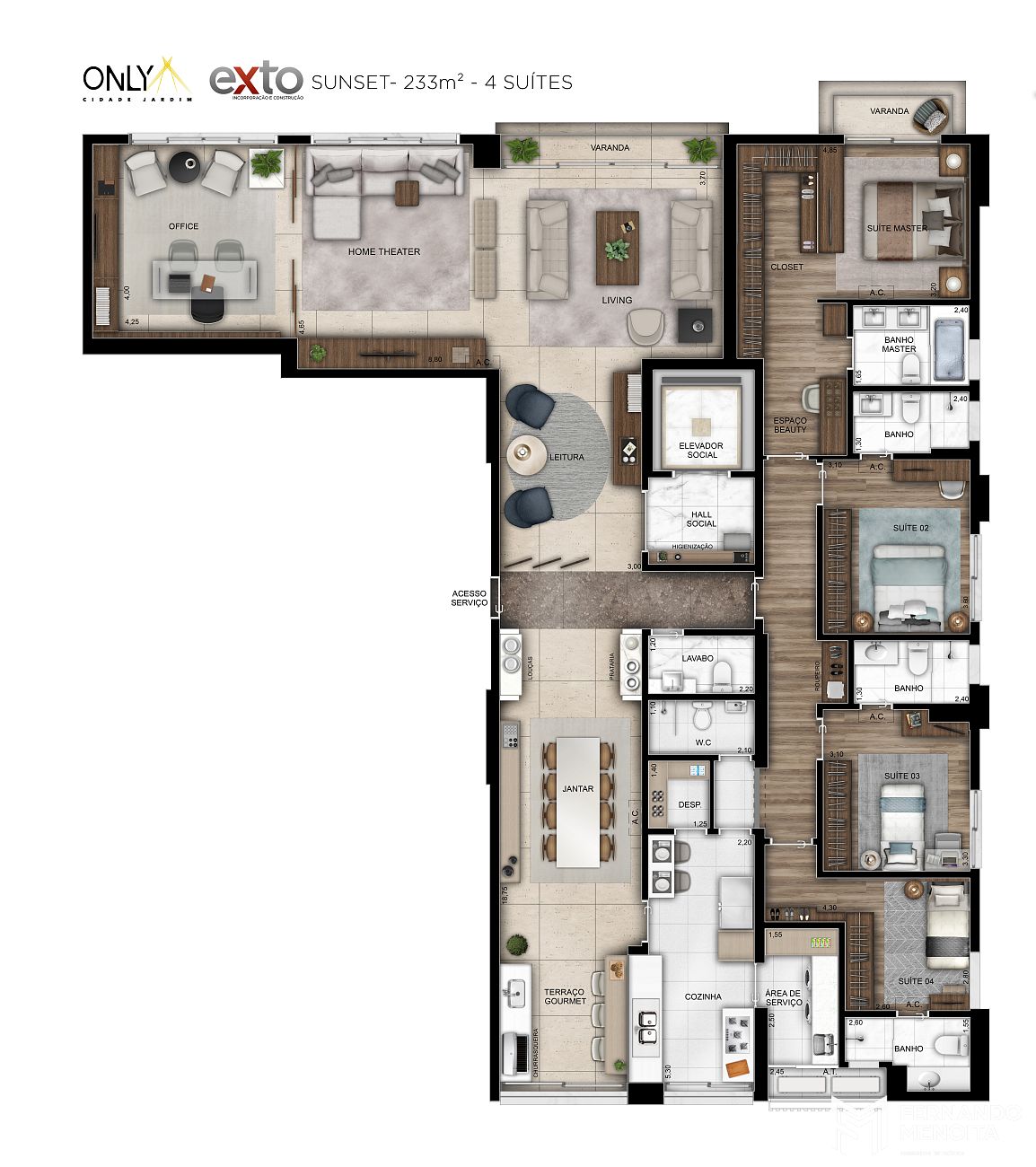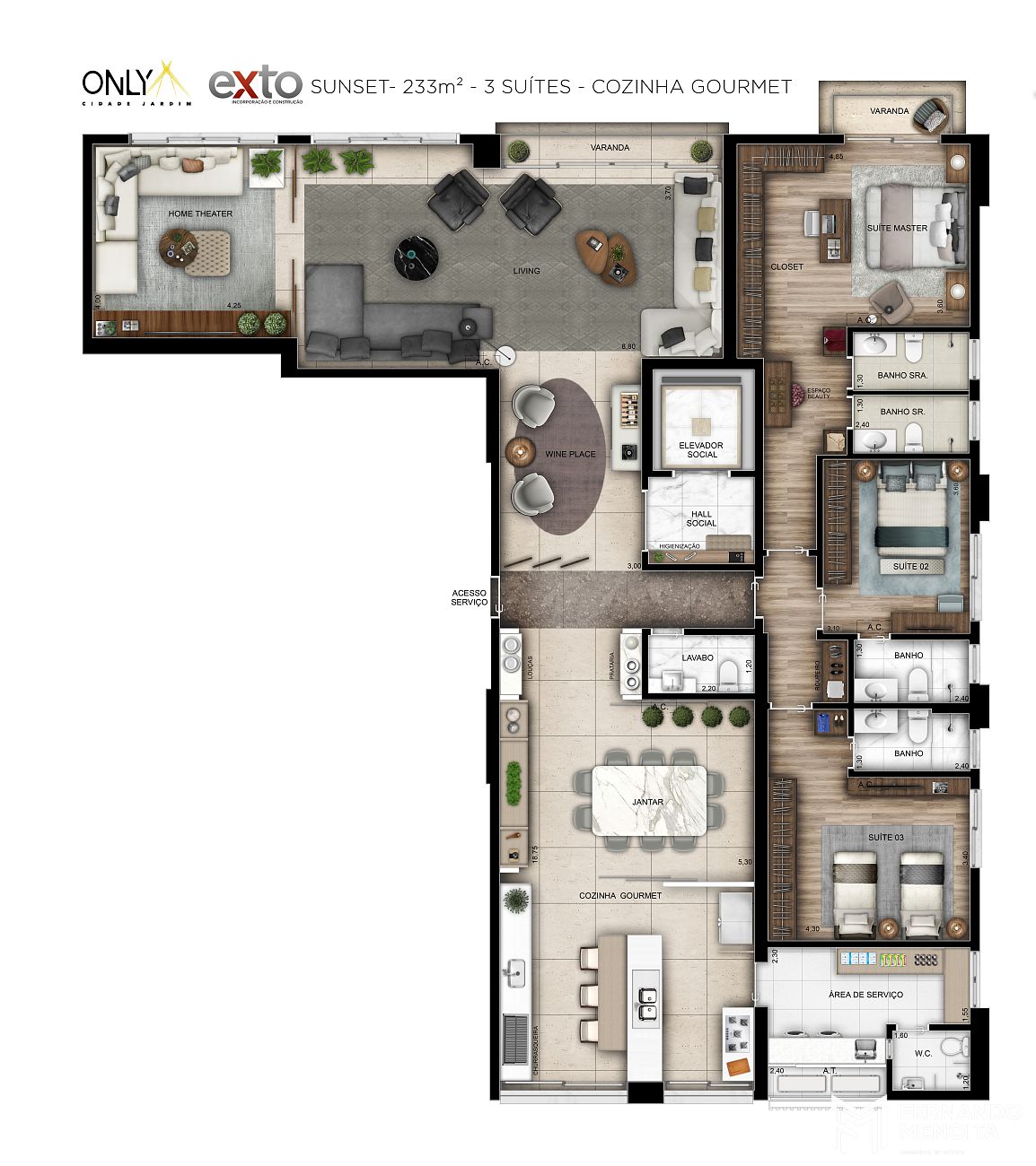 • 233 m² – Sunset – 3 suítes – cozinha gourmet