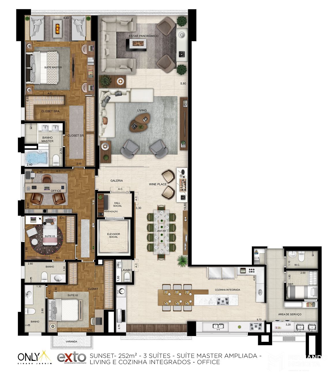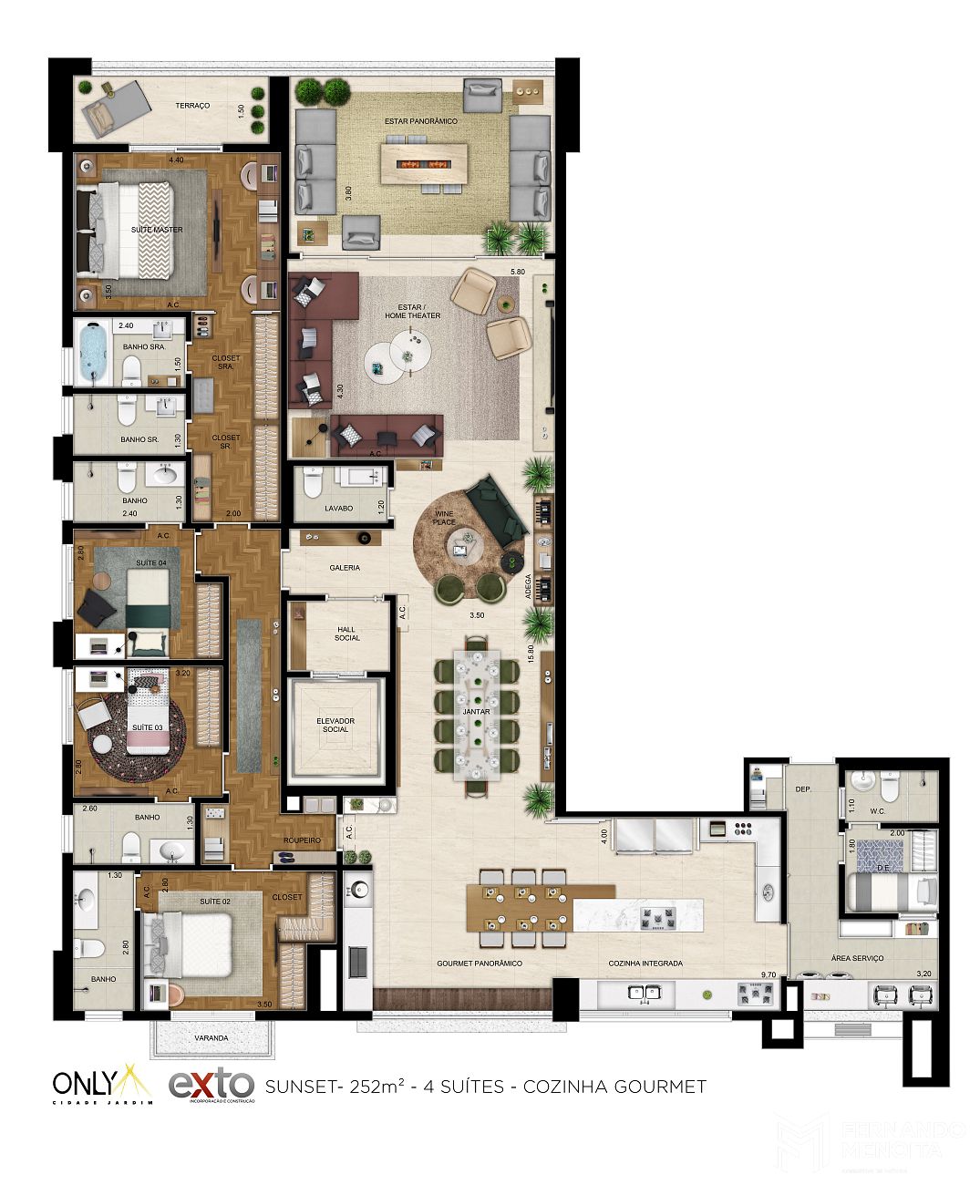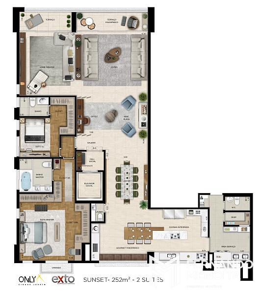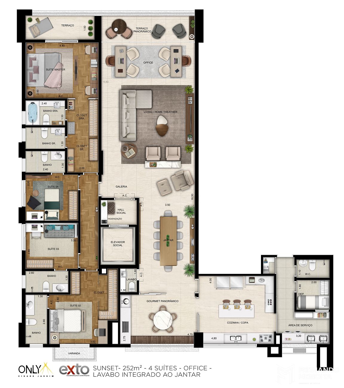 • 252 m² – Sunset – 4 suítes – cozinha gourmet