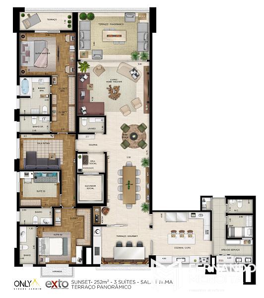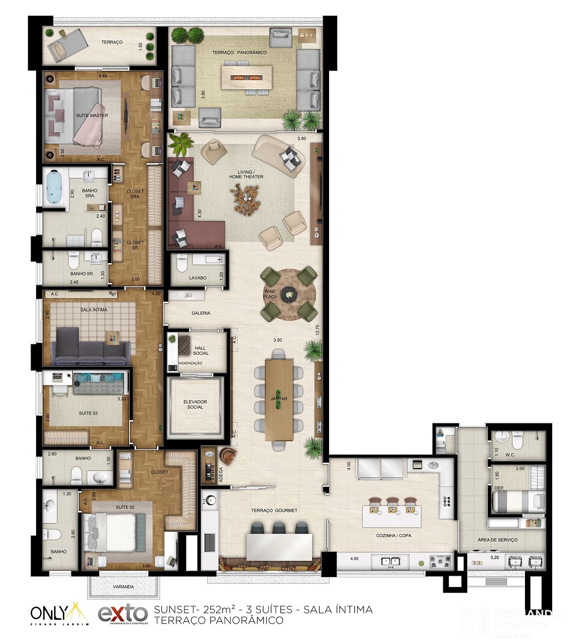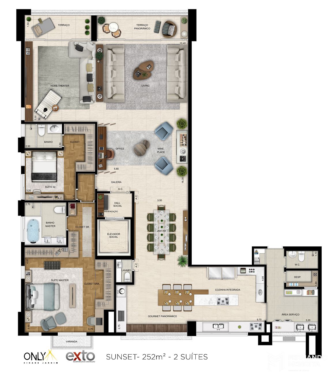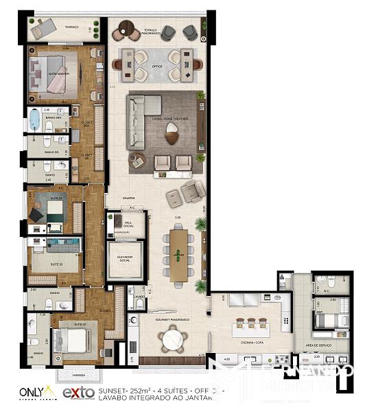 • 252 m² – Sunset – 4 suítes – cozinha gourmet