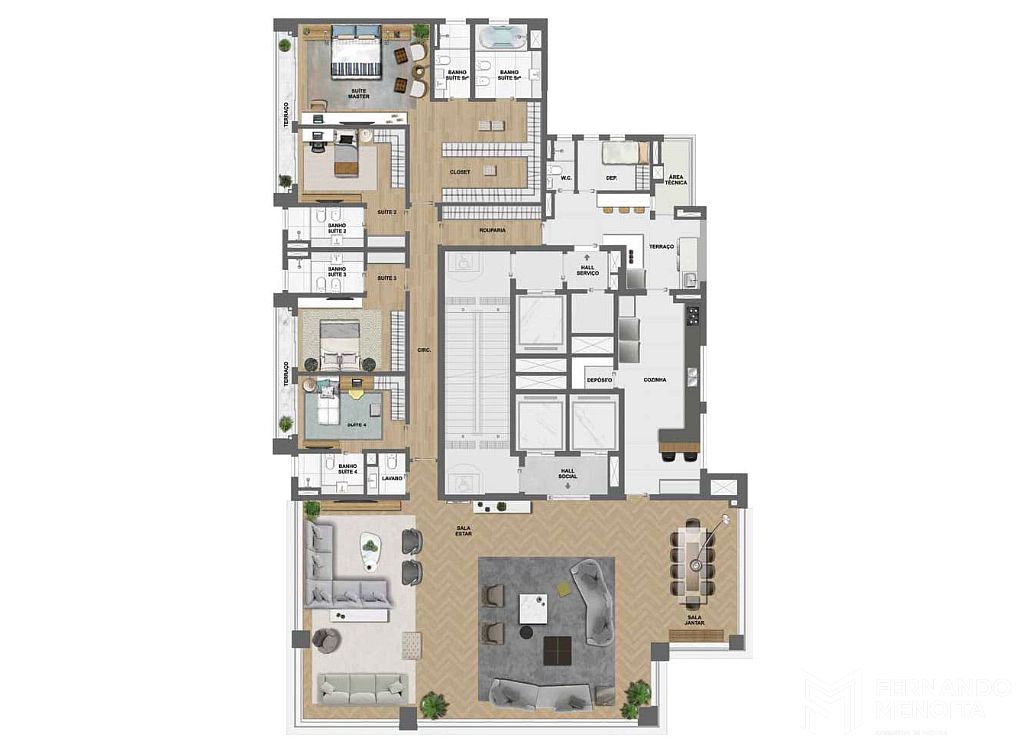 • Apartamento Garden: 547,97 m² (sendo 172,80 m² de terraço descoberto)