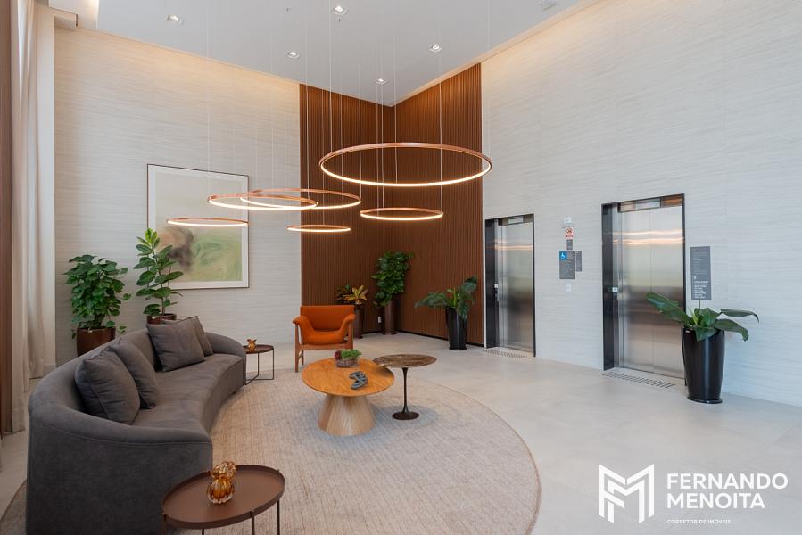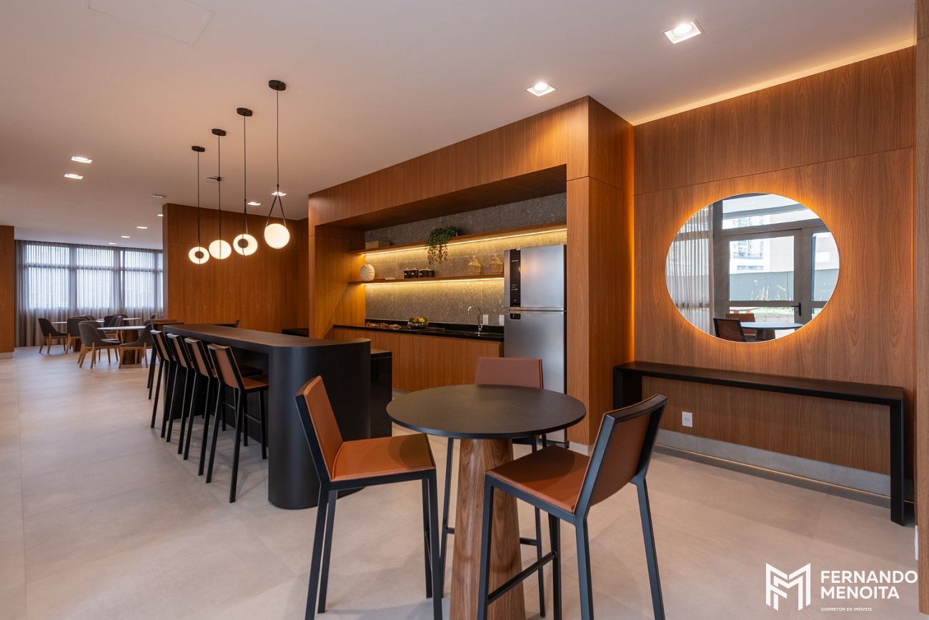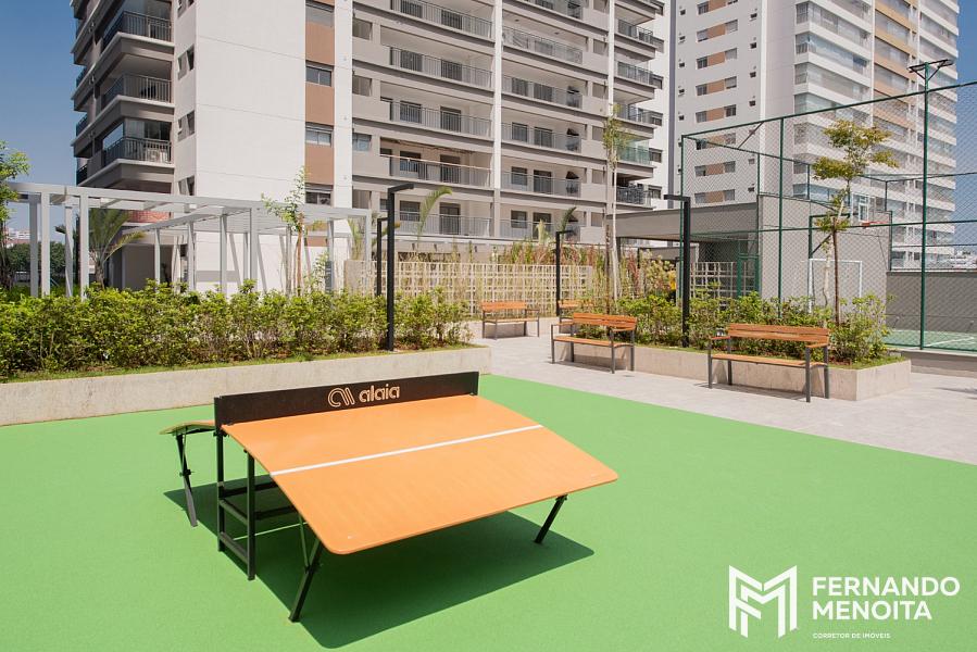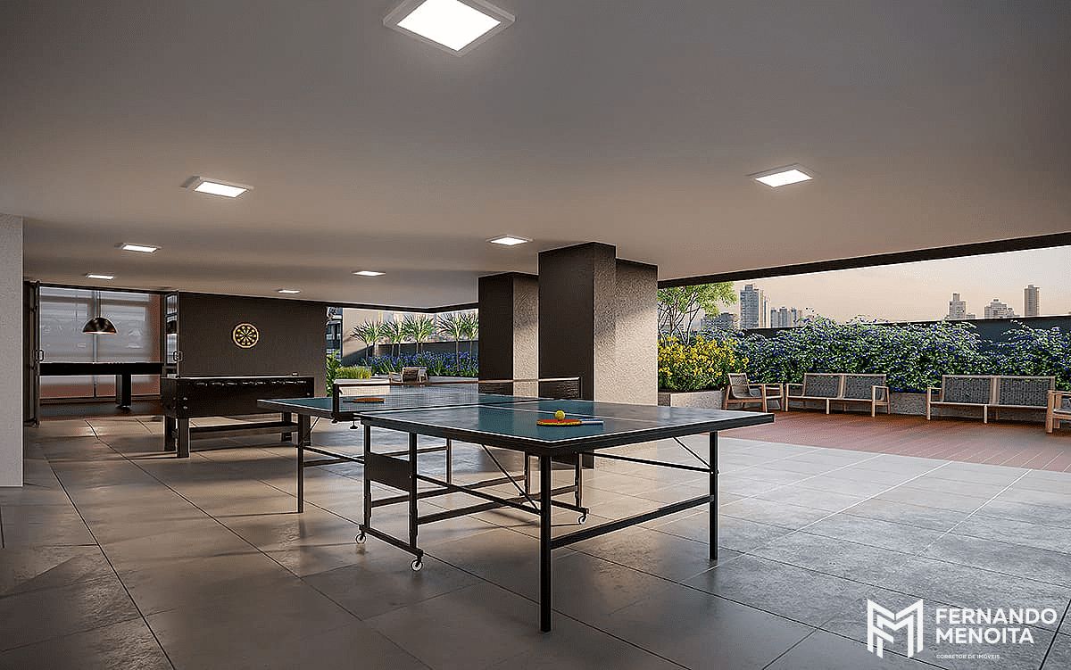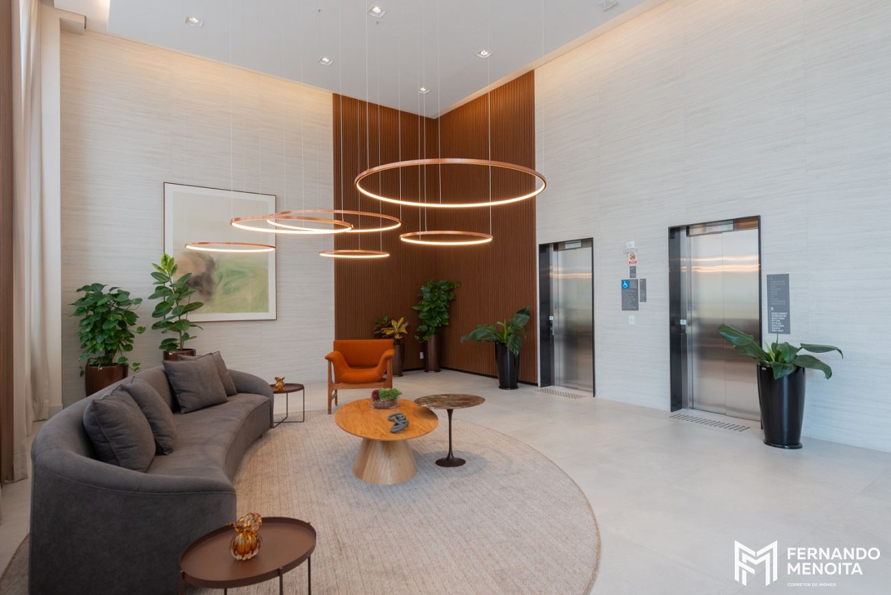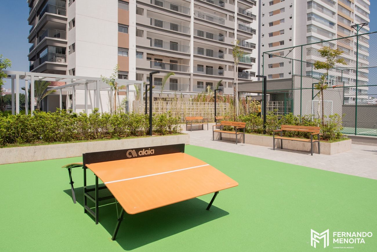 No térreo, o projeto oferece lobby com pé-direito duplo, espaço delivery, minimarket, bicicletário, quadra de beach tennis, pet place e segurança com portaria blindada.