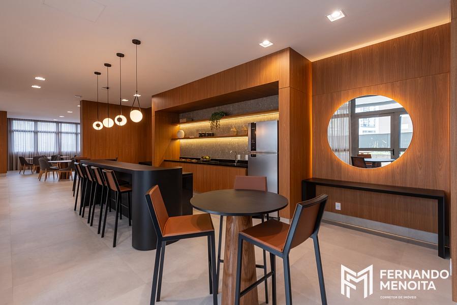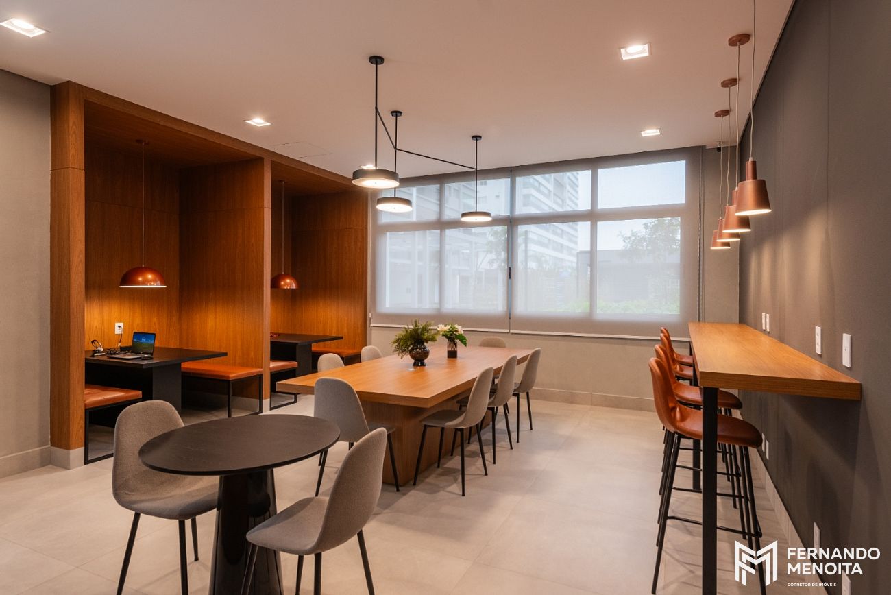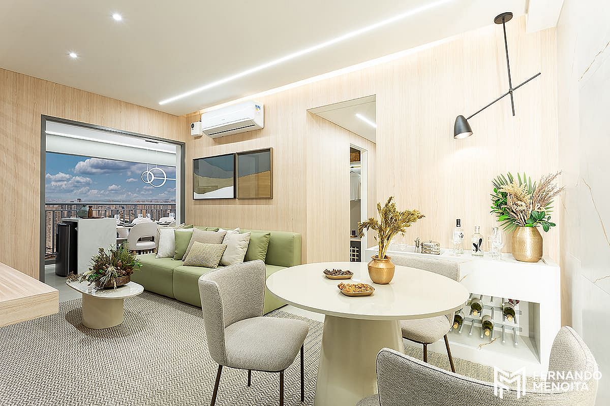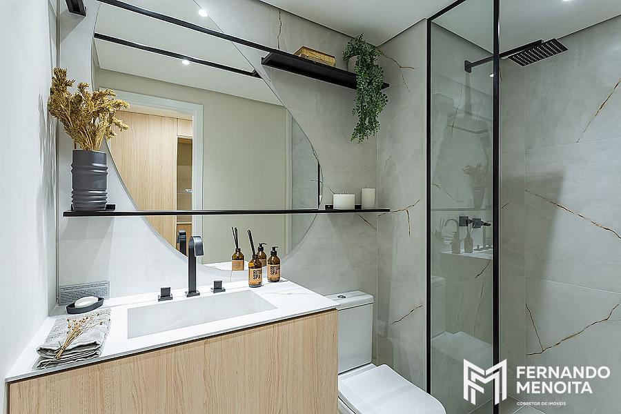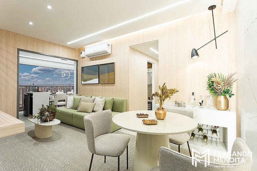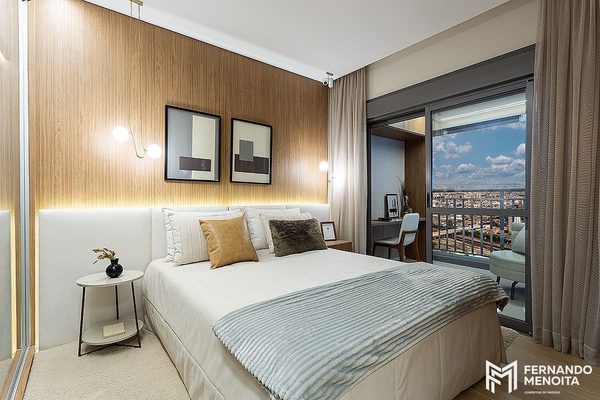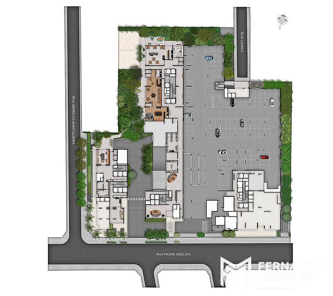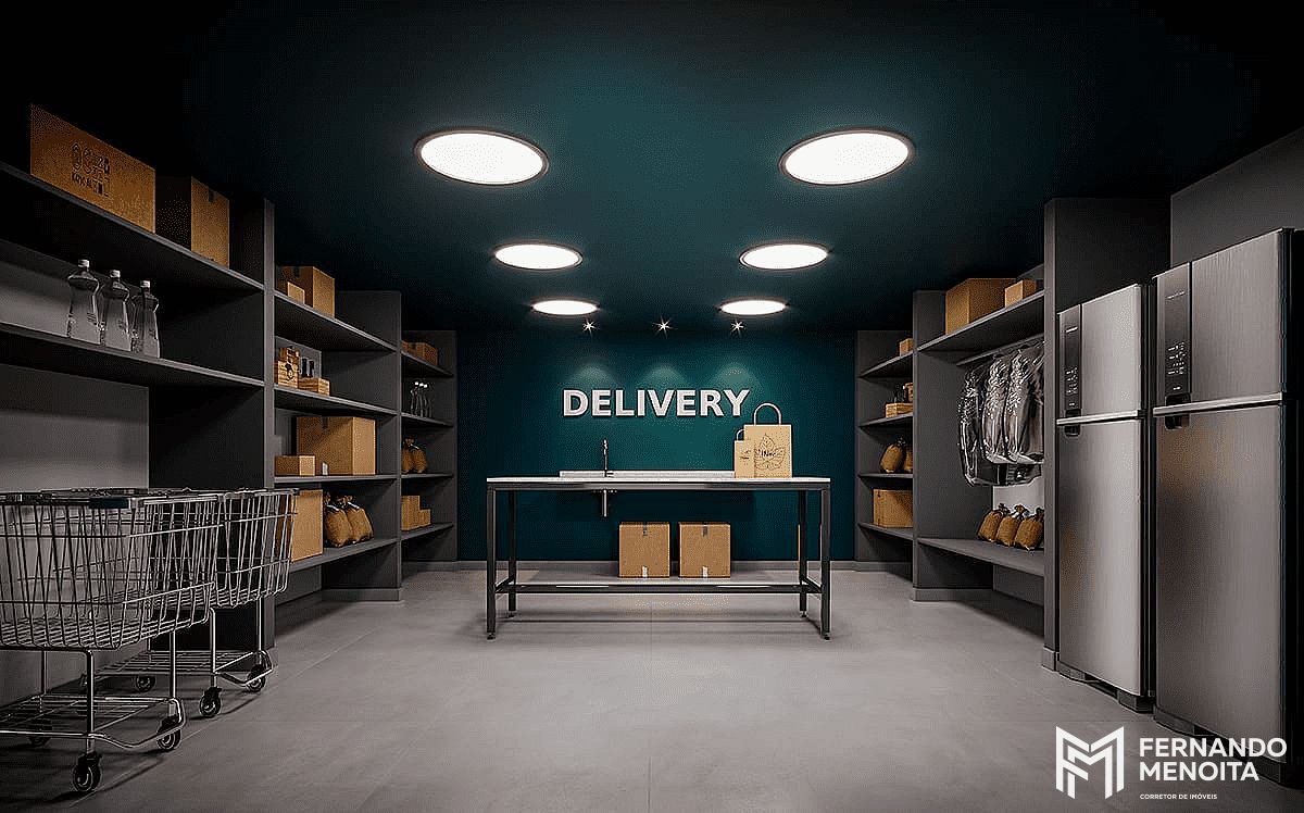 No térreo, o projeto oferece lobby com pé-direito duplo, espaço delivery, minimarket, bicicletário, quadra de beach tennis, pet place e segurança com portaria blindada.