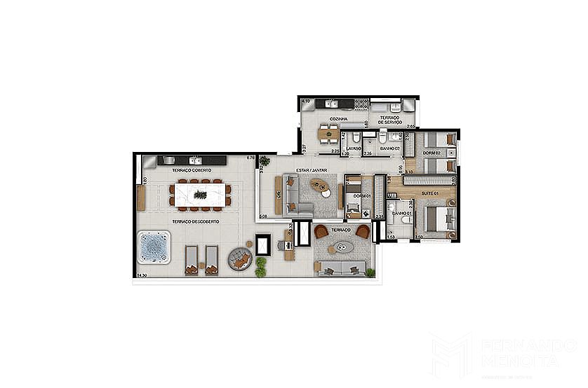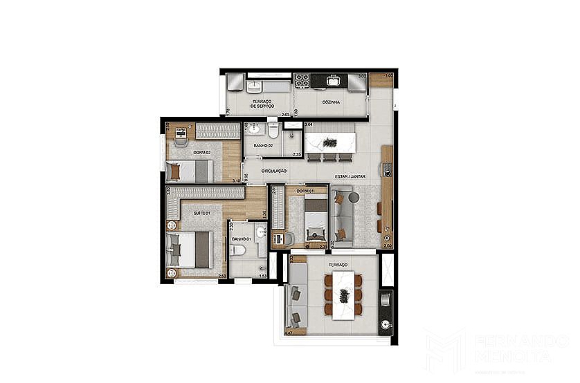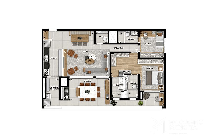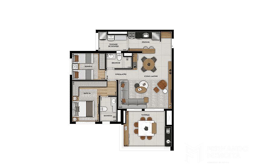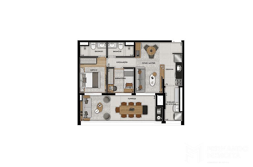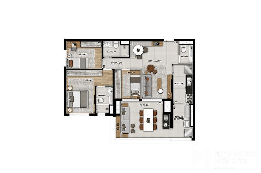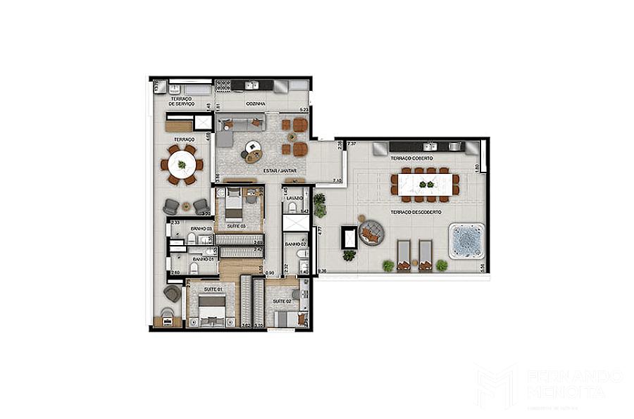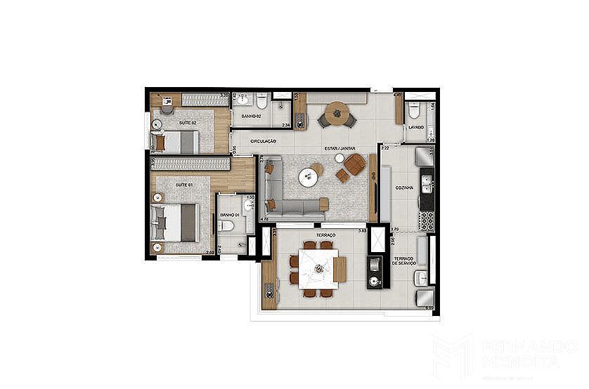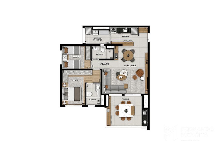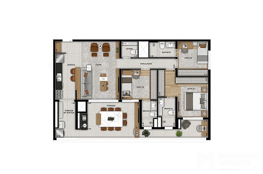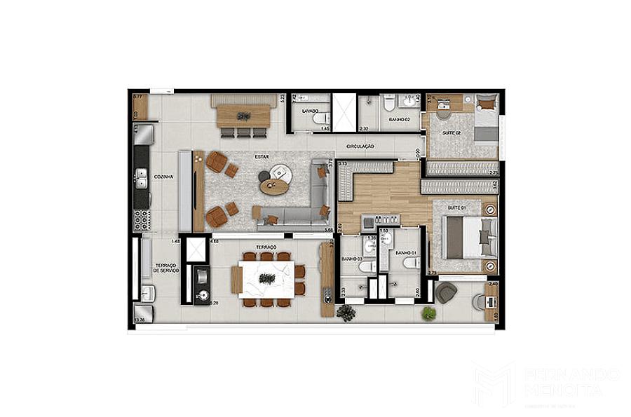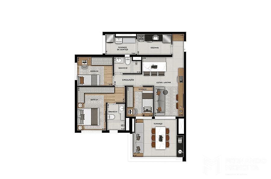 • 96 m² – 3 dorms. (1 suíte + lavabo)