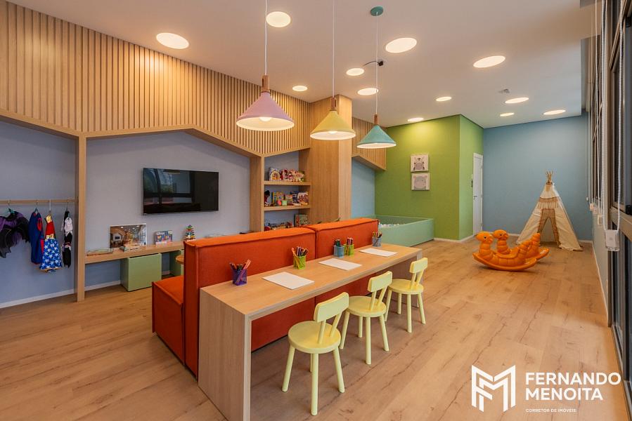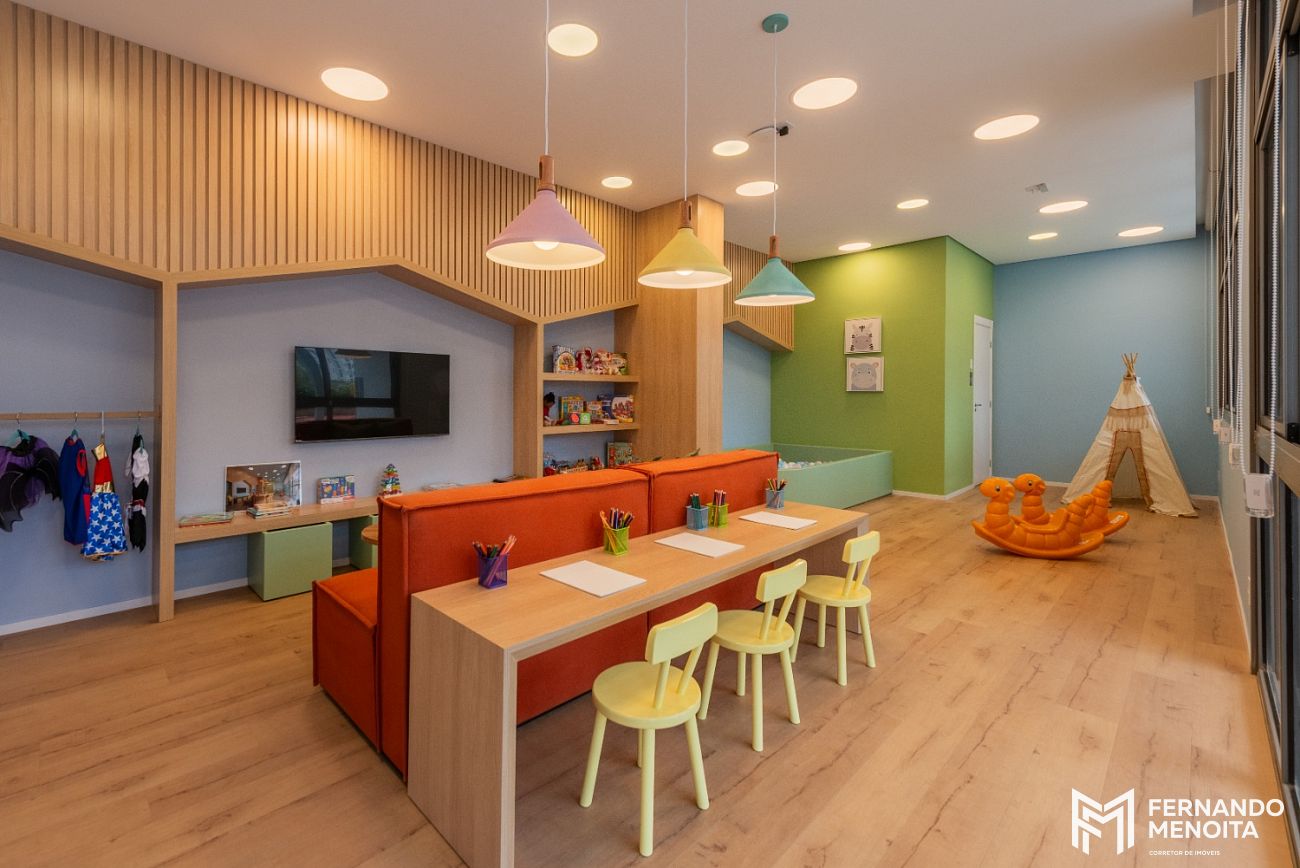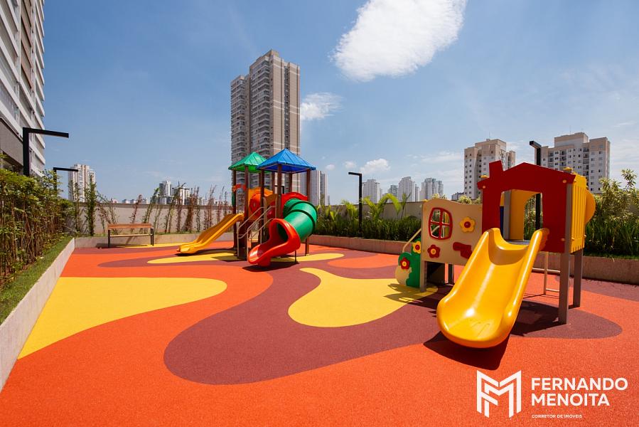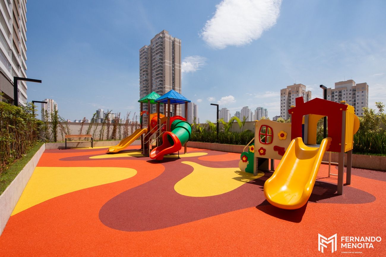 O lazer elevado ocupa o 4º pavimento, garantindo vista aberta e excelente insolação para a piscina adulto com raia de 25 metros, piscina infantil com prainha, fitness de 259 m², salão de festas com espaço gourmet de 188 m², coworking, brinquedoteca, quadra recreativa, churrasqueira com forno de pizza, playground, solarium, bar da piscina e muito mais.