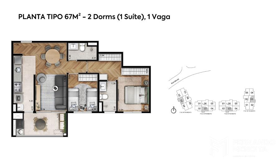 • Tipo B – 67,77 m² (finais 03 e 06)