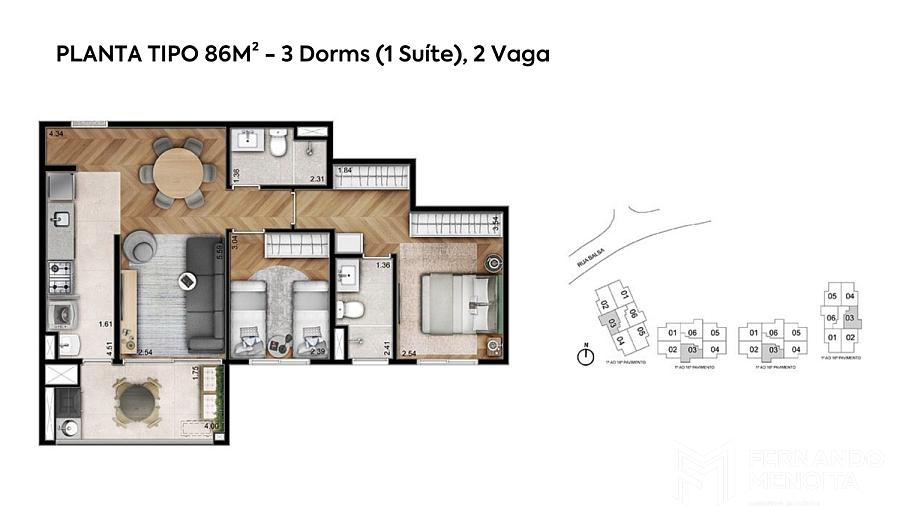 • Tipo A – 86,87 m² (finais 01, 02, 04 e 05)
