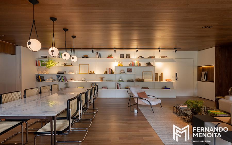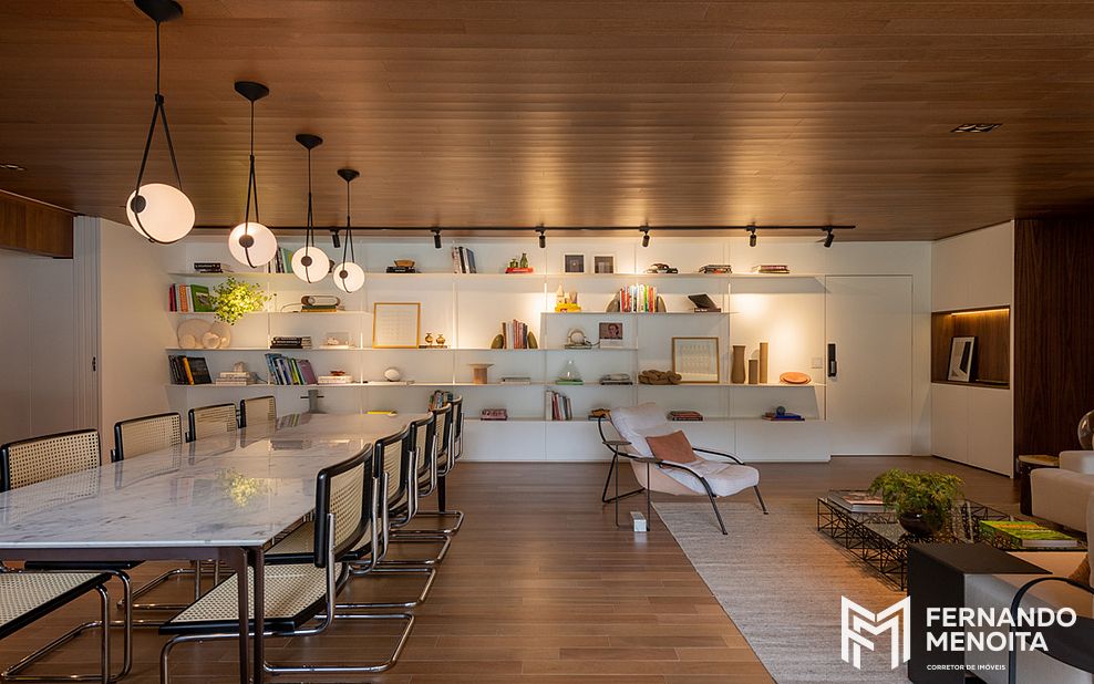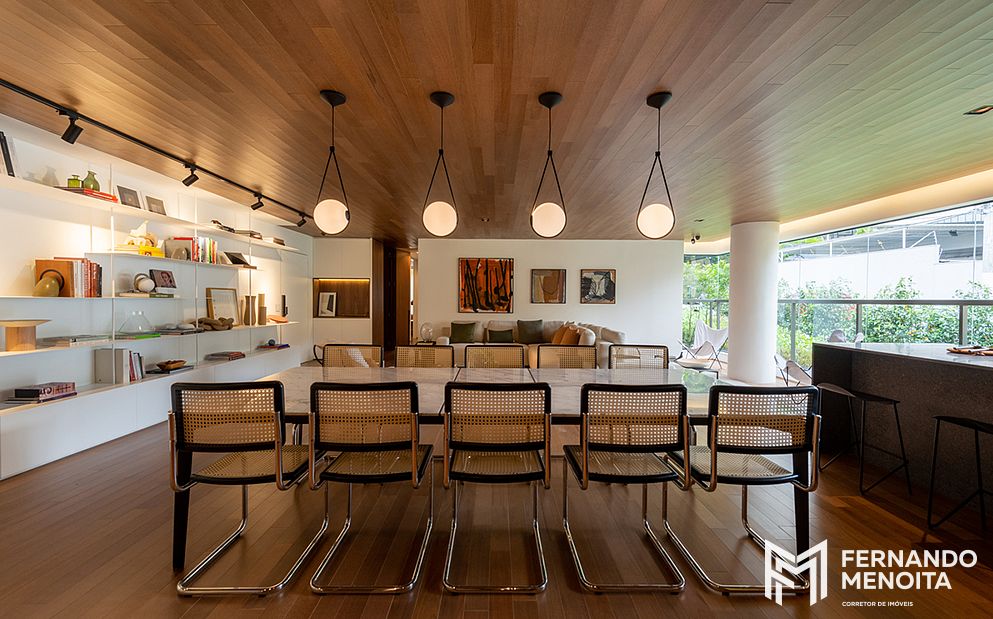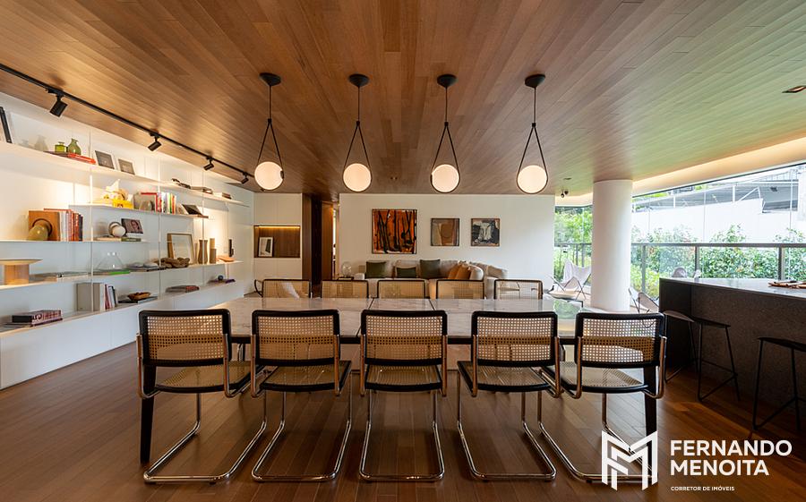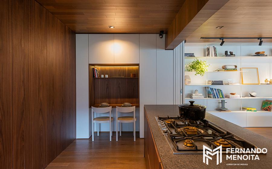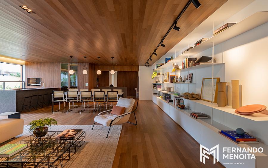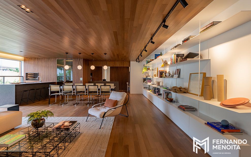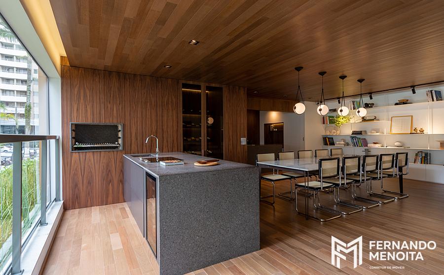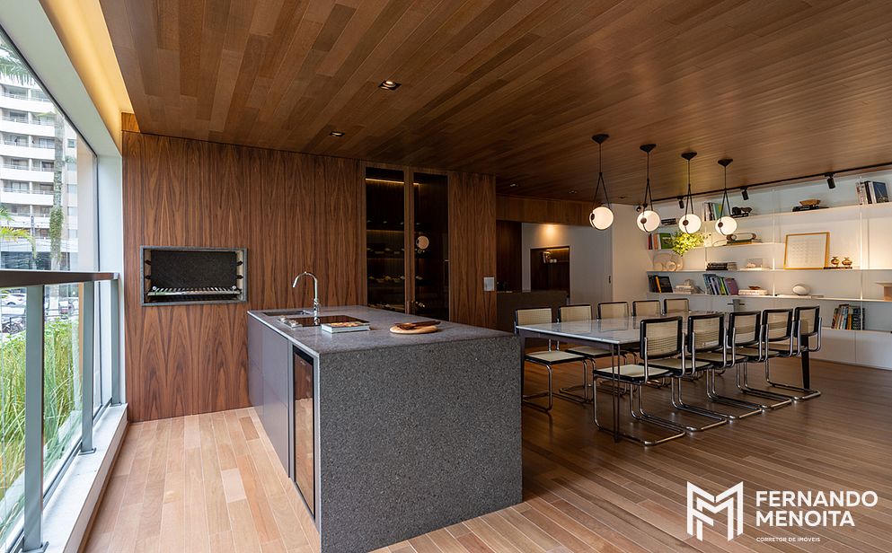 • Integração entre sala, terraço e cozinha gourmet