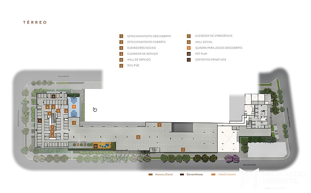 Na parte de segurança, o projeto incorpora soluções avançadas como controle de acessos, proteção perimetral, circuito fechado de câmeras com central de monitoramento, guarita com vidros blindados e gestão especializada para operação do sistema, garantindo alto nível de proteção e tranquilidade.
