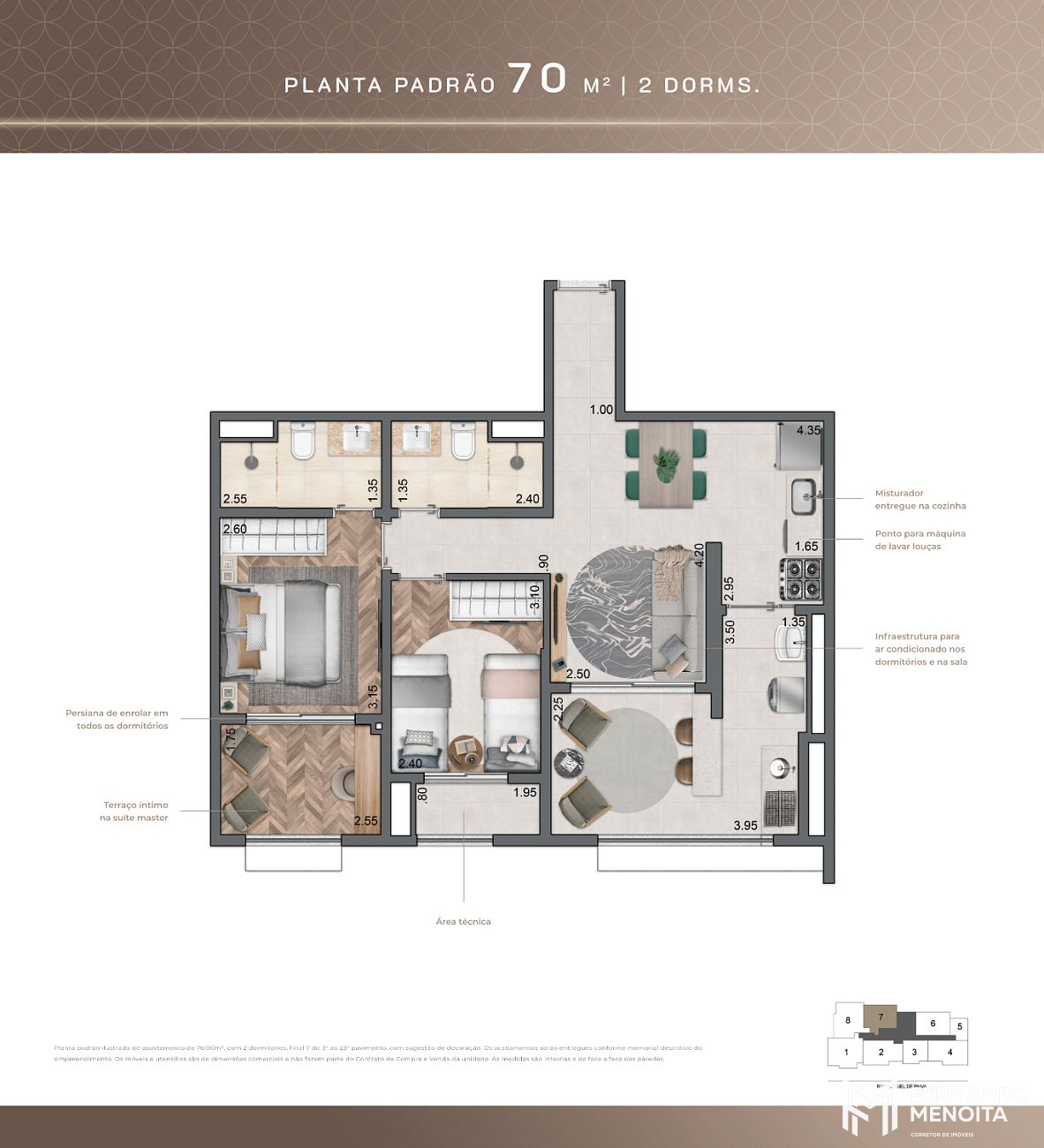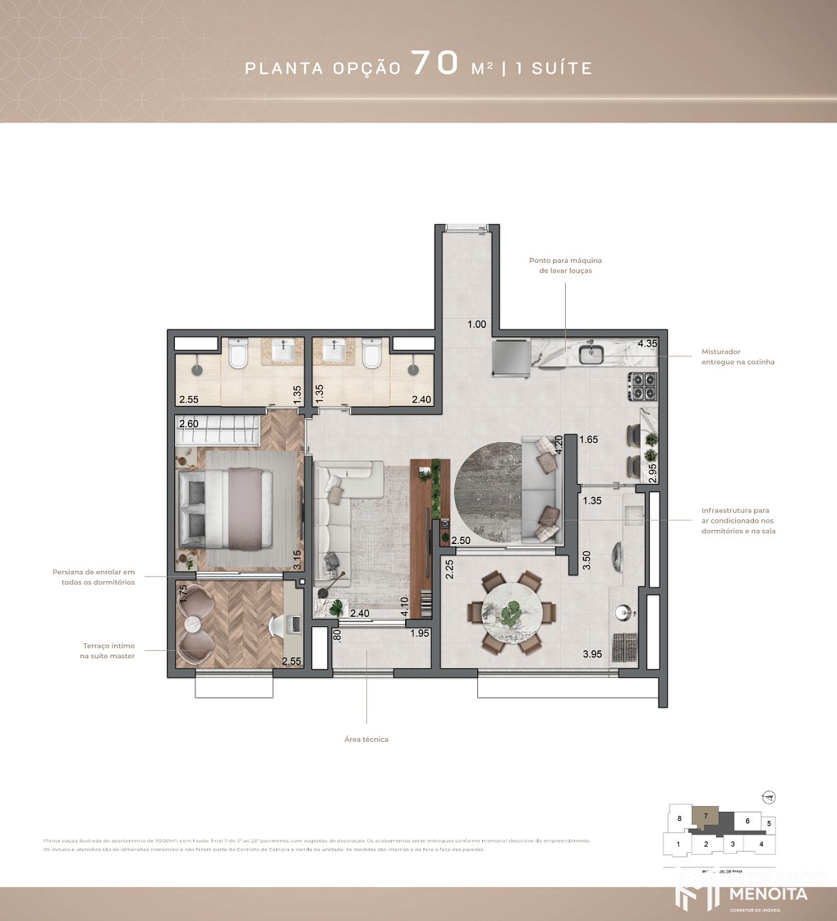 • 70 m² – opção 1 suíte (final 7)